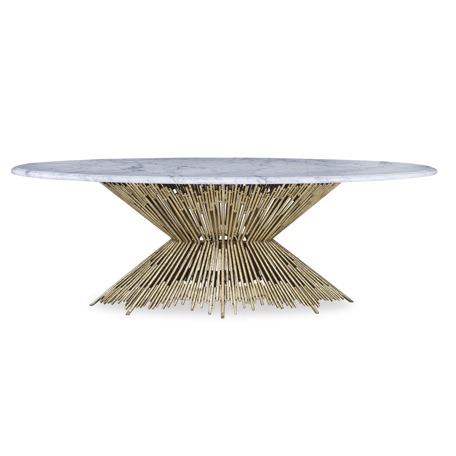 Product Description: Ambella Home 05237-640-001 Pick Up Sticks Dining Table Base - This statement dining table is crafted from iron tubes with a gold leaf finish. Available with a glass top, which is sold seperately. Marble top shown is no longer available.