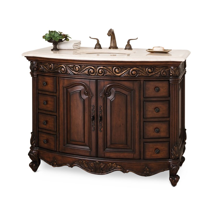 Product Description: Ambella Home 06227-110-226 Provincial Medium Sink Chest Dark - Constructed from a solid mahogany frame, this medium sink chest in the Provincial collection is a beautiful expression of style. A large center cabinet and eight drawers for storage. Balsa porcelain sink installed.