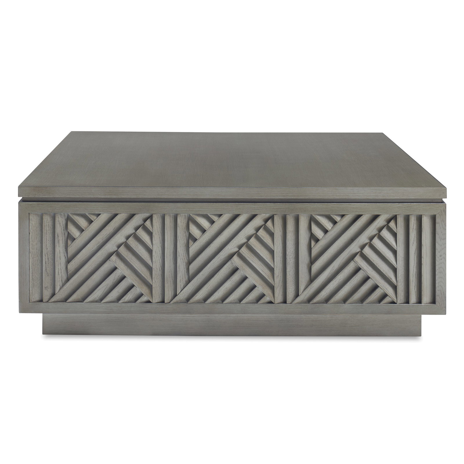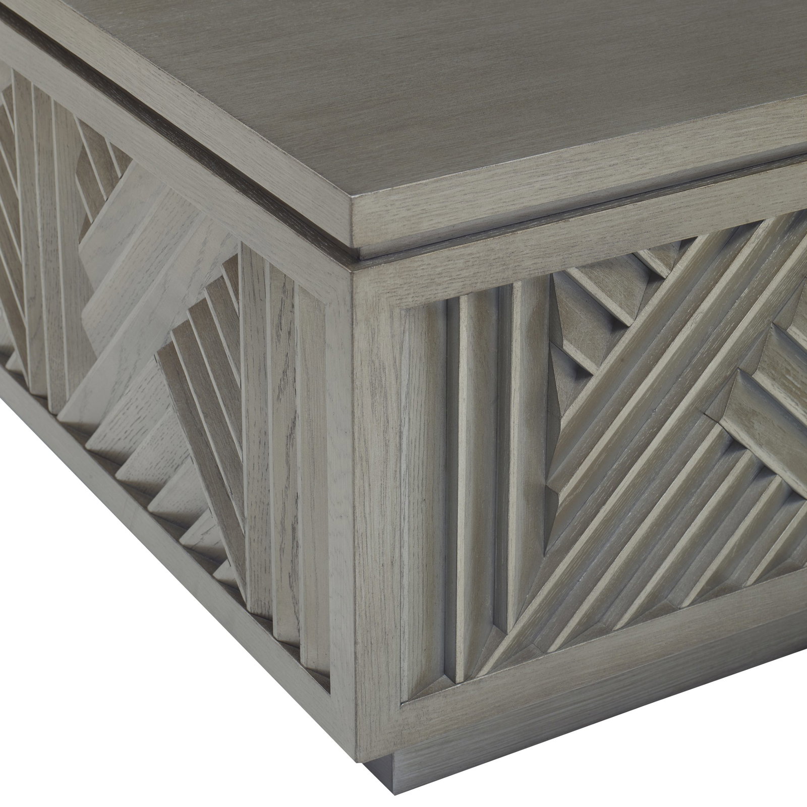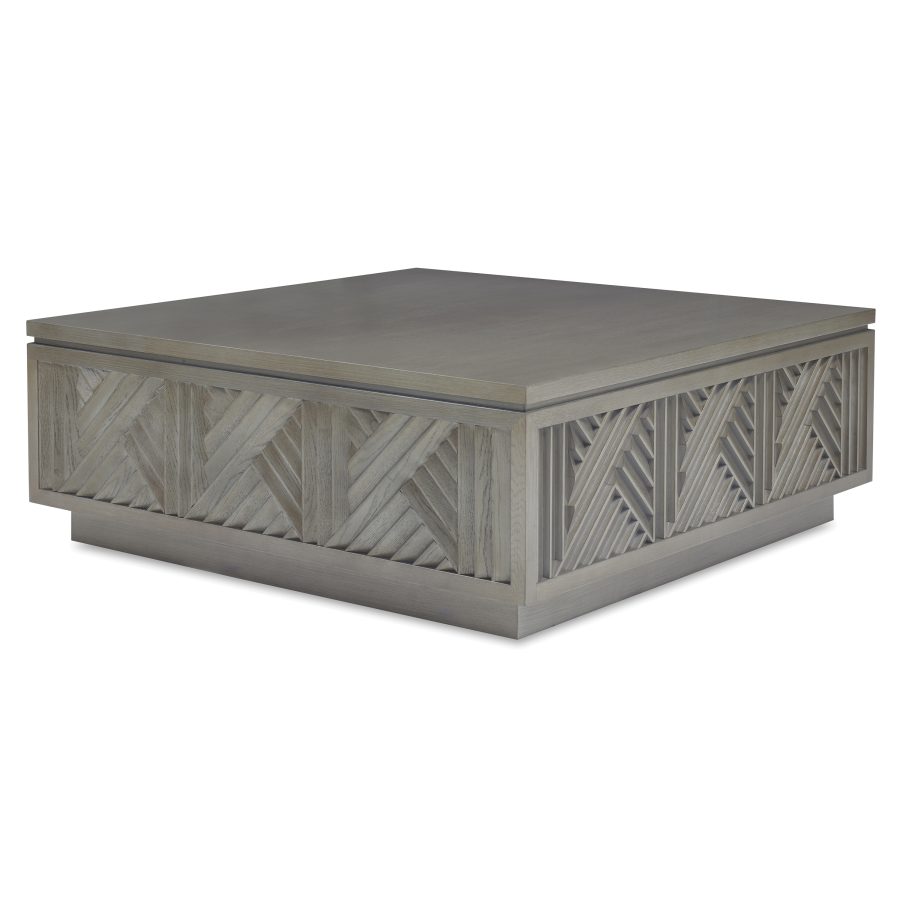 Product Description: Ambella Home 07290-920-010 Piedmont Cocktail Table - This cocktail table includes a rhythmic pattern cut into its sides. The pattern is repeated on the veneered Oak top. Finished in warm grey. Designed by Shayla Copas.