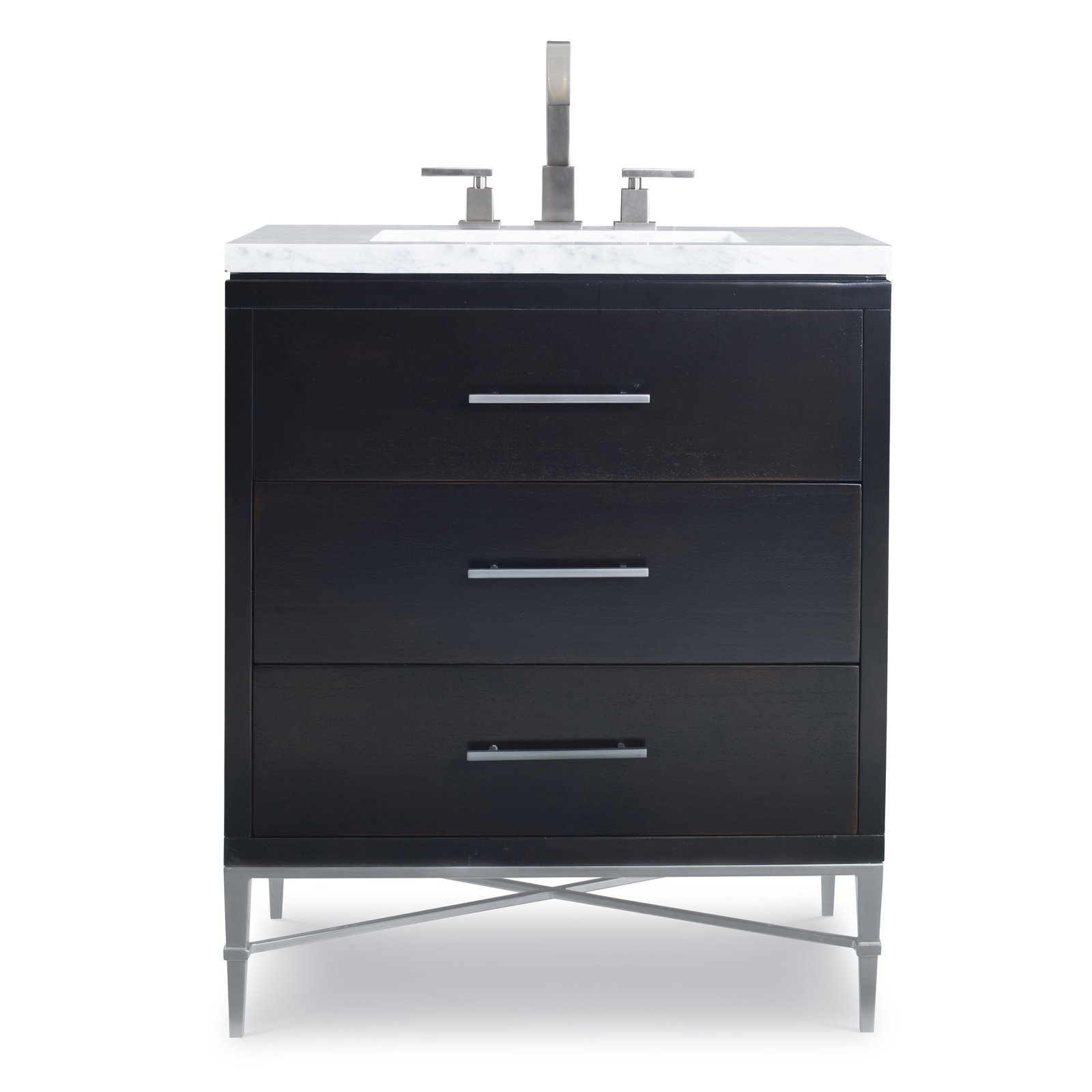 Product Description: Ambella Home 09202-110-201 Benton Sink Chest - Crafted from Mahogany, this sink chest is finished in a rich black brown and raised on a stainless steel base with X stretchers. Two working drawers are included. Porcelain sink comes installed.