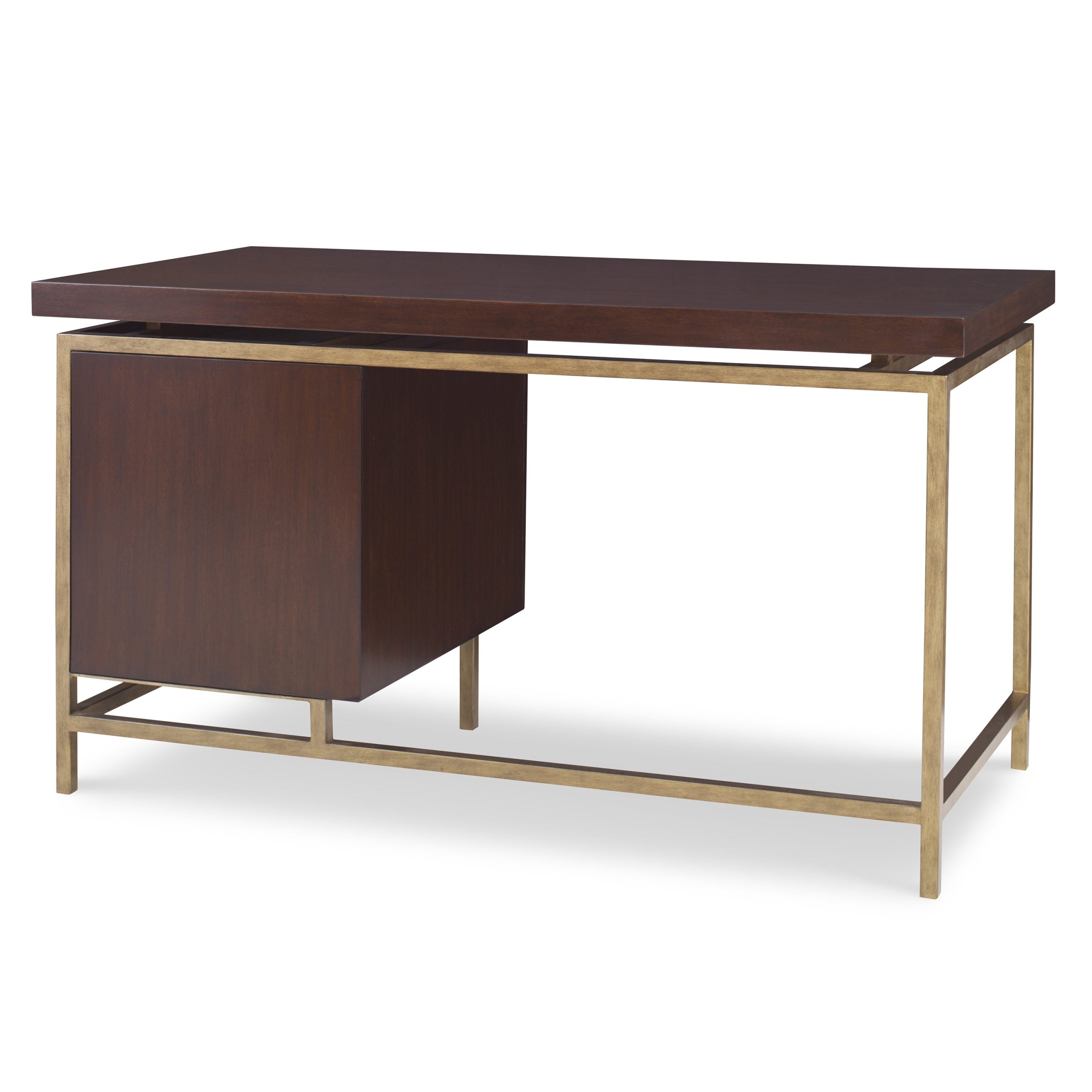 Product Description: Ambella Home 09204-300-054 Addison Writing Desk - Inspired by mid-century vintage pieces, this one pedestal writing desk features two drawers raised on an antique gold leafed base. Antique gold leaf hardware completes the look.