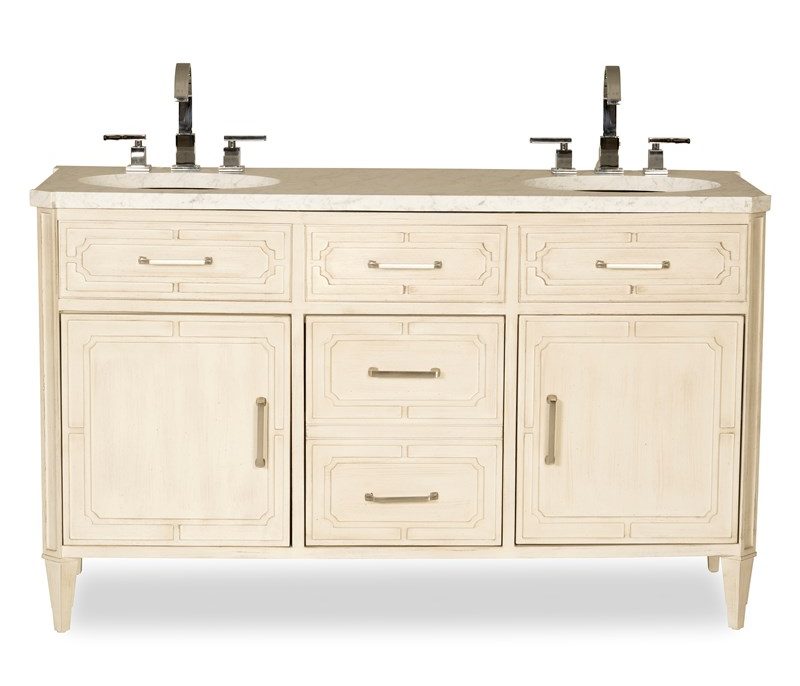 Product Description: Ambella Home 09206-110-510 Emperor Double Sink Chest Custom - Crafted from Mahogany, this sink chest features French Regency detailing on its three touch latch doors. The top is white quartz. Porcelain sink bowl included. The vanity is also available for purchase without the top.