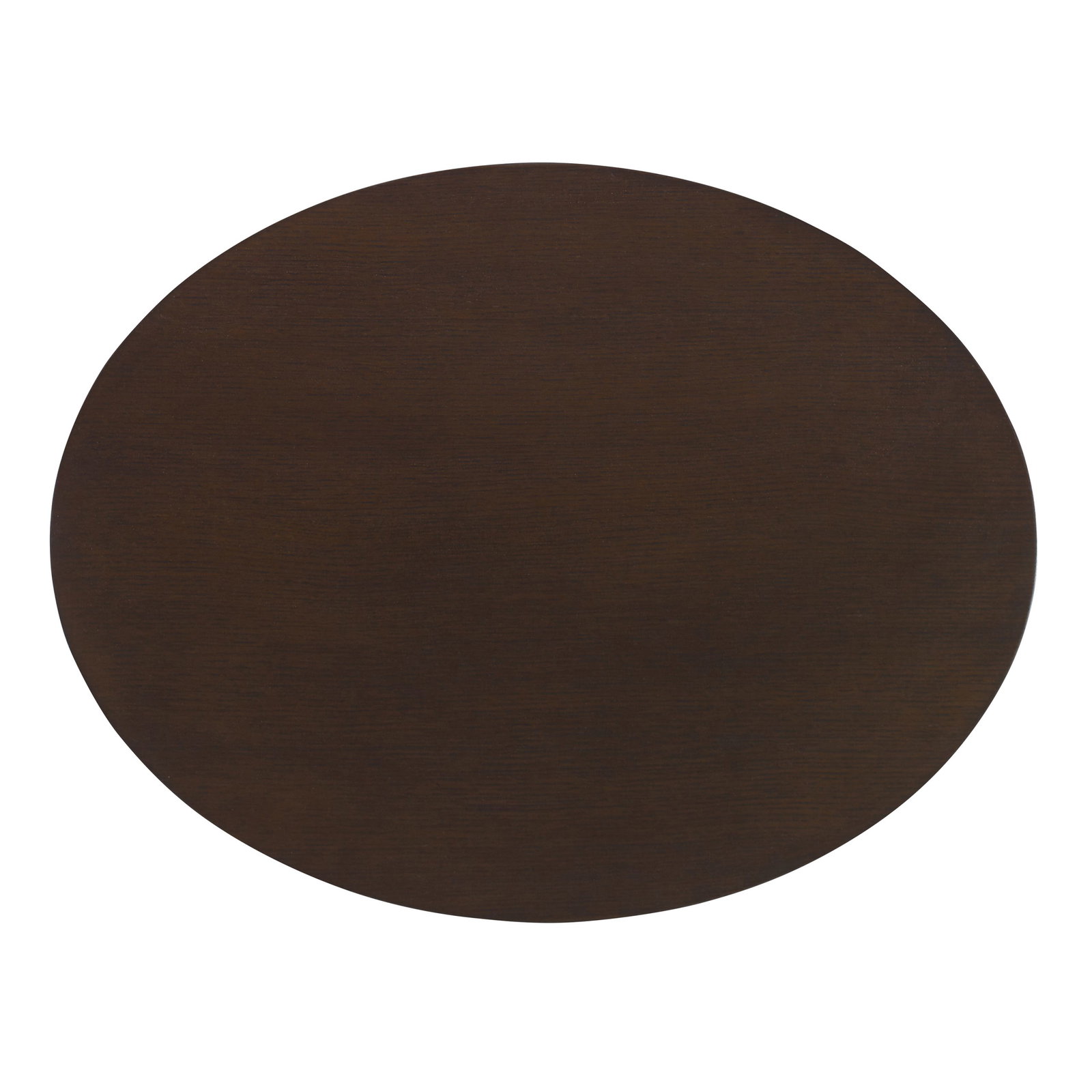 Product Description: Ambella Home 09216-900-001 Vision Accent Table Walnut / Gold Leaf - An eclectic accent table featuring an oval White Oak veneer top and base raised by a sculptural pierced center post. Finished in walnut and gold leaf.