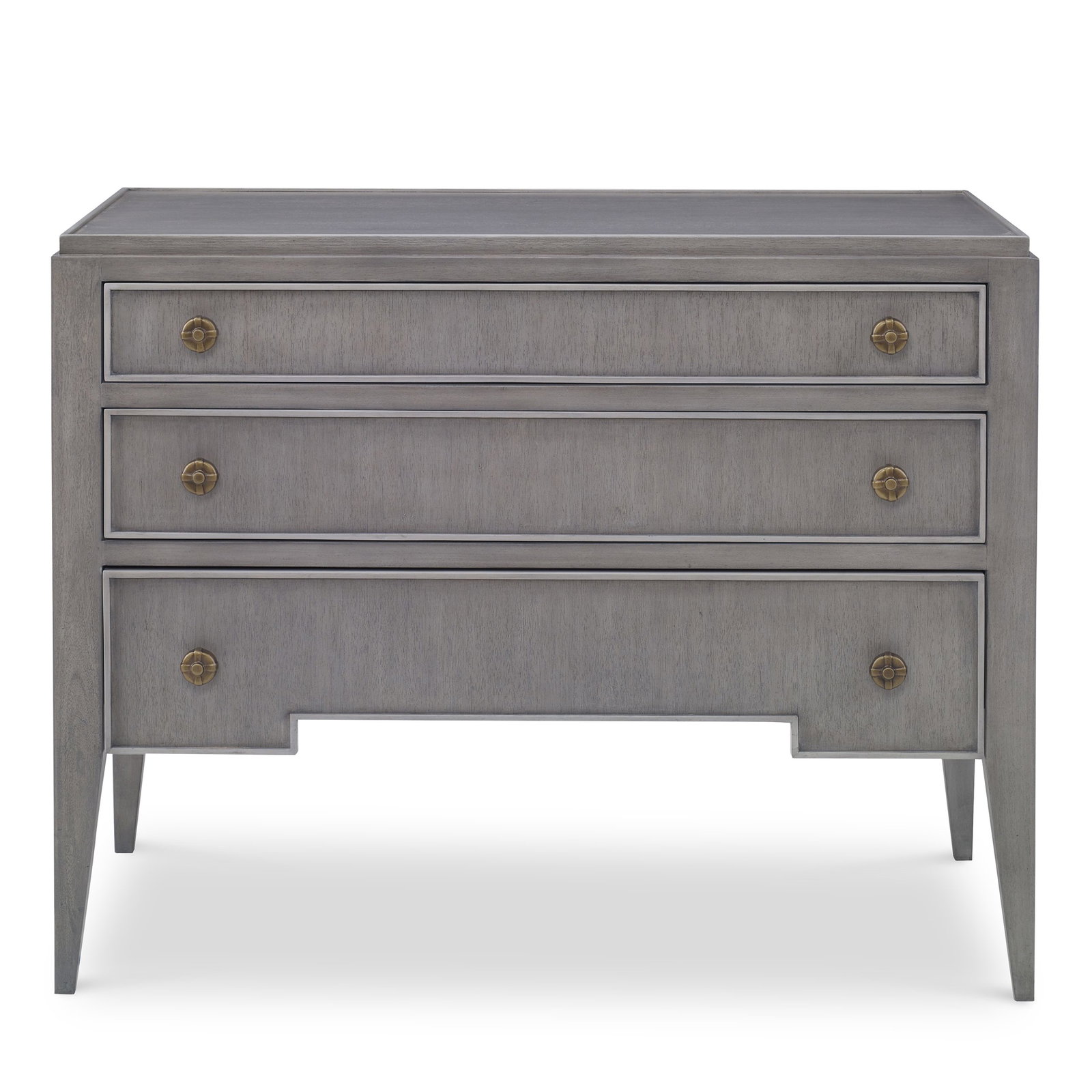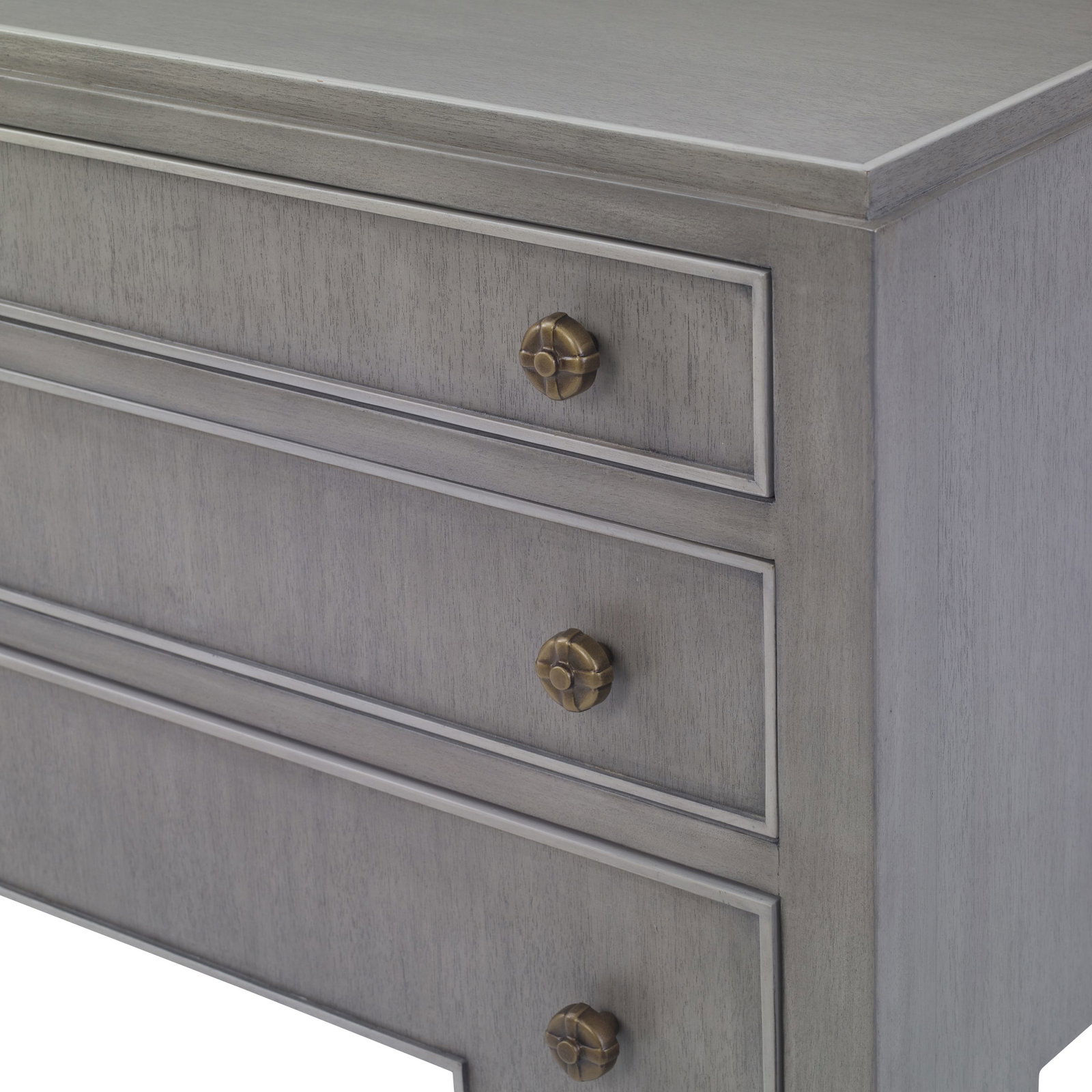 Product Description: Ambella Home 09267-830-001 Latham Chest - This Mahogany, three drawer chest includes contrasting wood trim which outlines each drawer. Antique brass finished hardware.