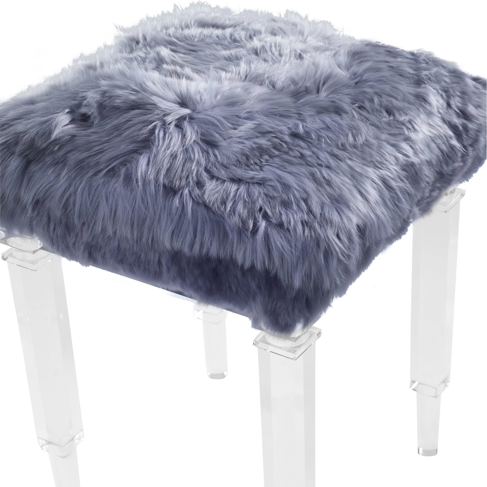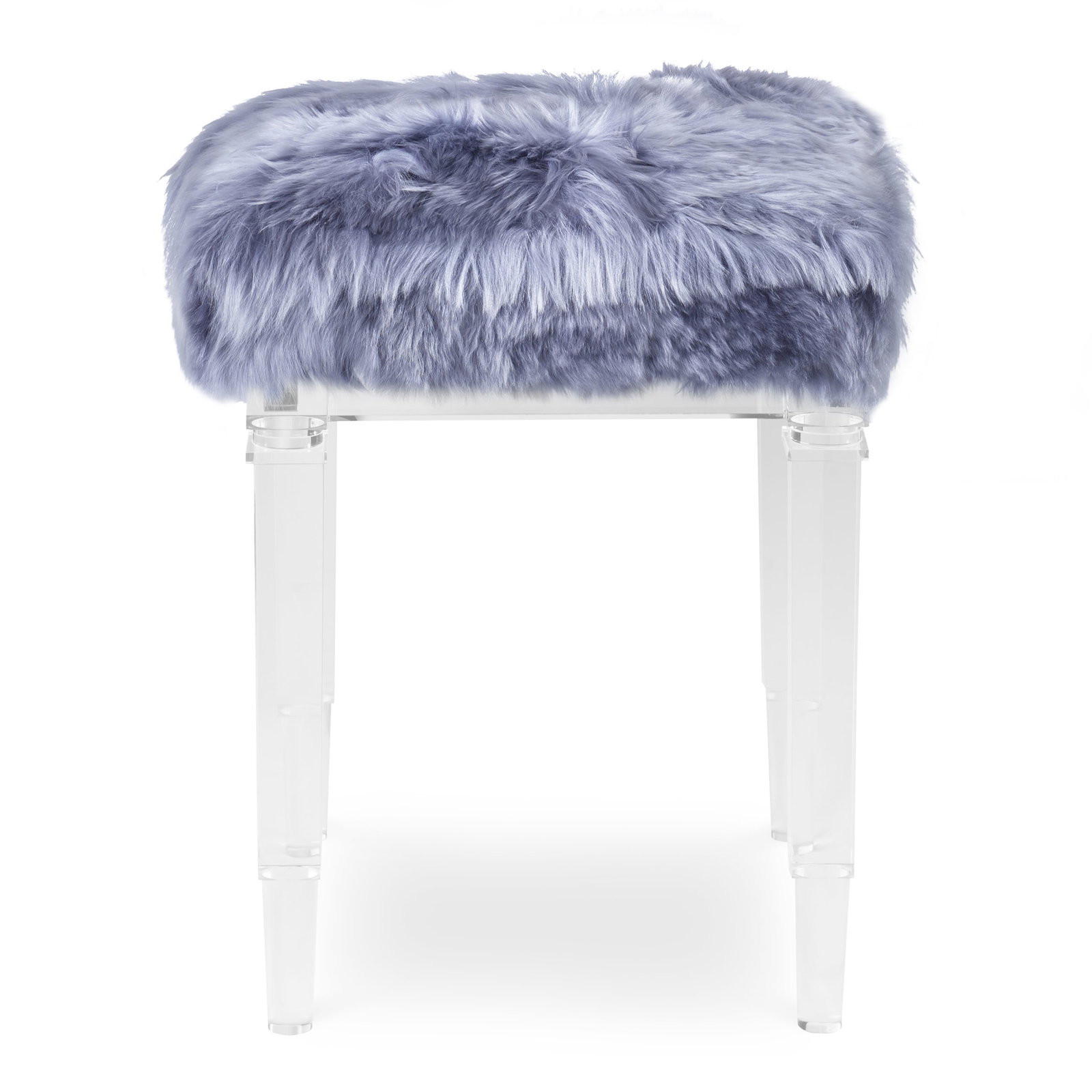 Product Description: Ambella Home 104-00 Split Personality Ottoman - A small scale ottoman or bench featuring four tall acrylic legs that alternate from round to square turnings. The clear acrylic seat rails support a boxed seat cusion.