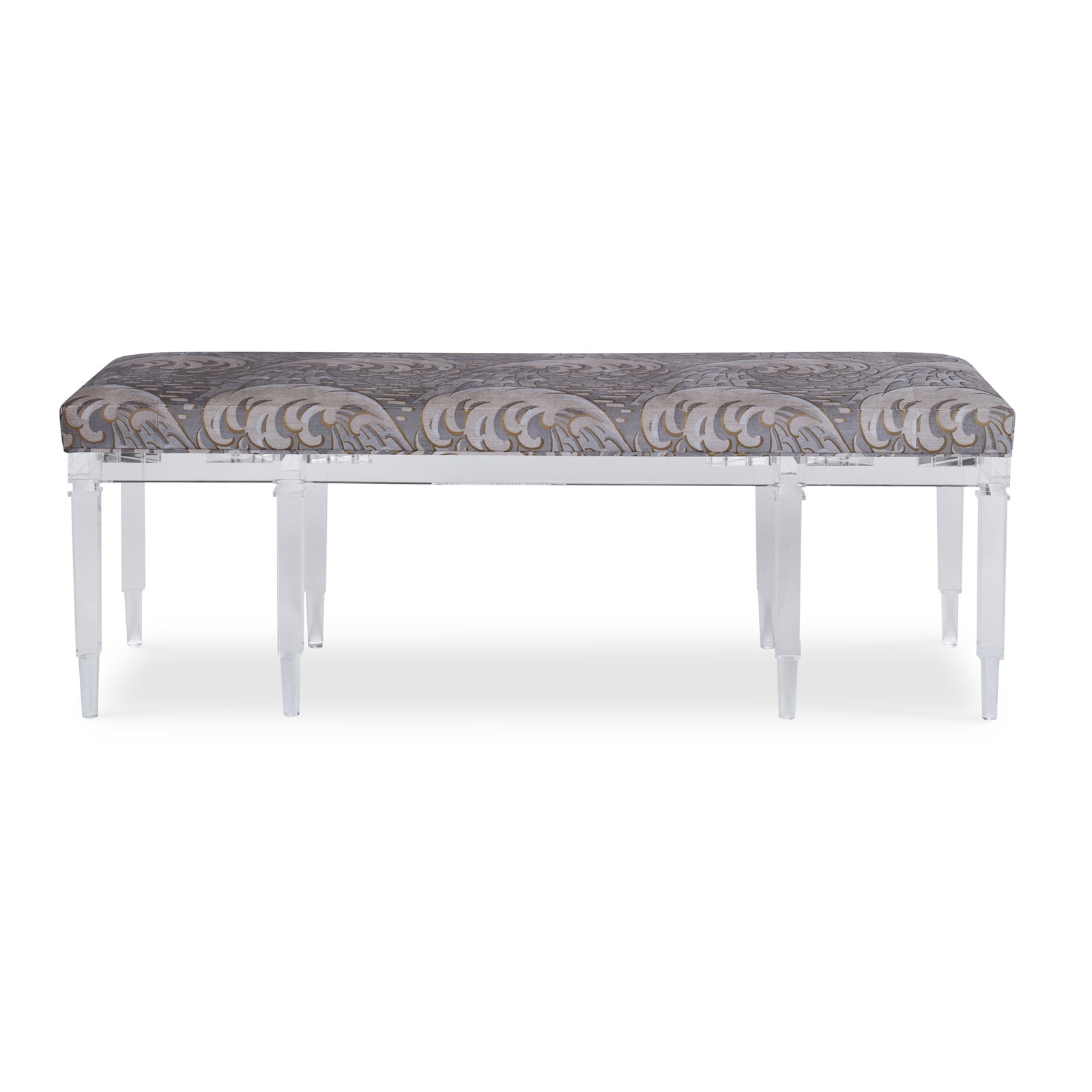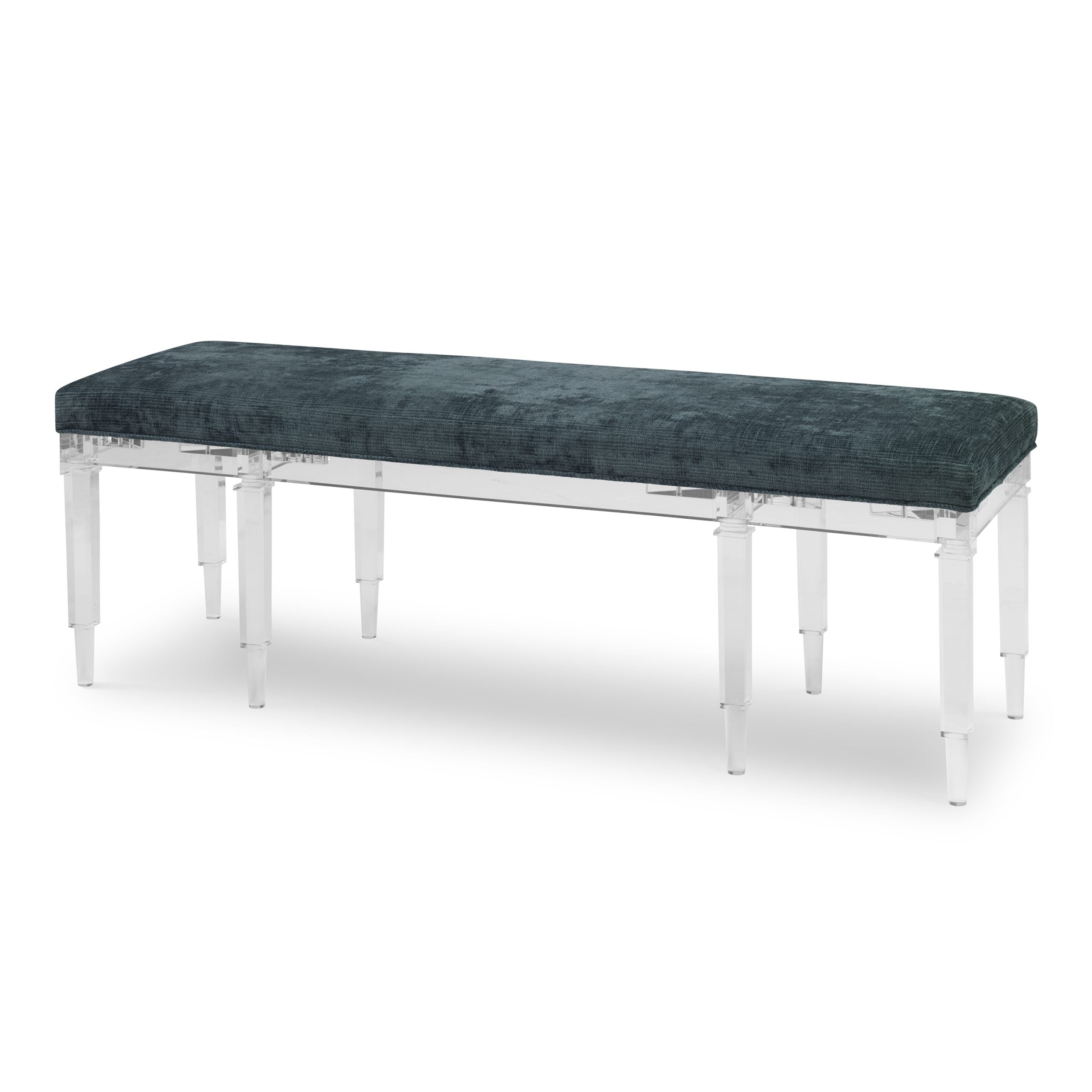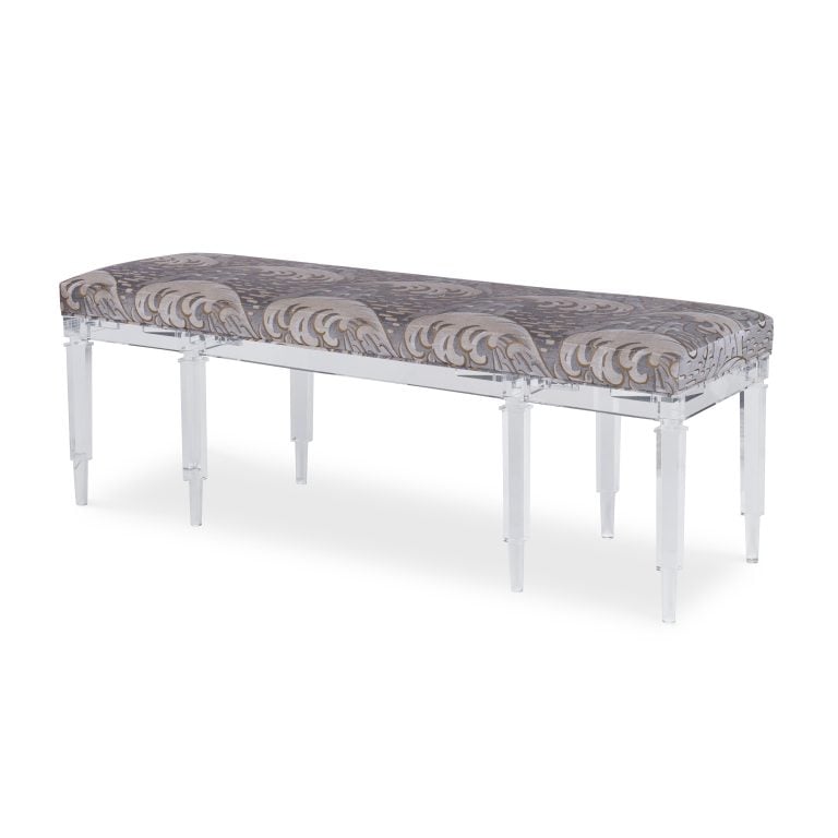 Product Description: Ambella Home 124-00 Split Personality Bench Long - The longer version of the 104-00 Split Personality Ottoman. This acrylic bench features four tall legs that alternate from round to square turnings. An attached boxed seat cushion completes the look.