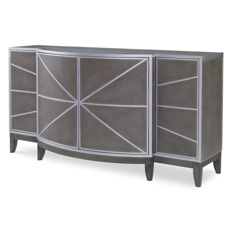 Product Description: Ambella Home 12596-630-010 Starburst Credenza Custom - This cabinet features a dramatic sunburst across shagreen doors. Touch latch doors and adjustable shelves are included.