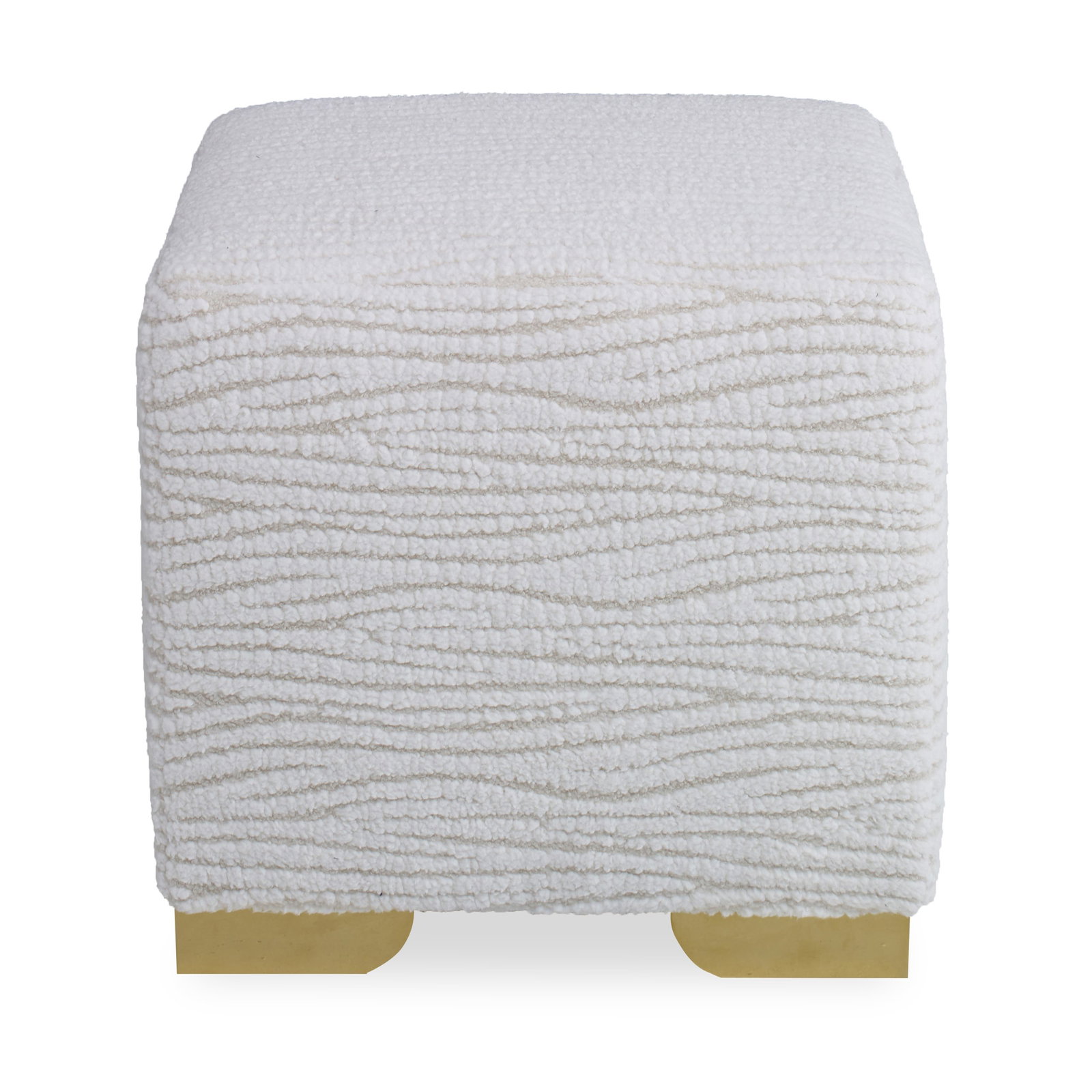 Product Description: Ambella Home 147-00 Cubert Ottoman - This cube shaped ottoman features a tightly upholstered top and your choice of brushed brass or nickel wedge feet.