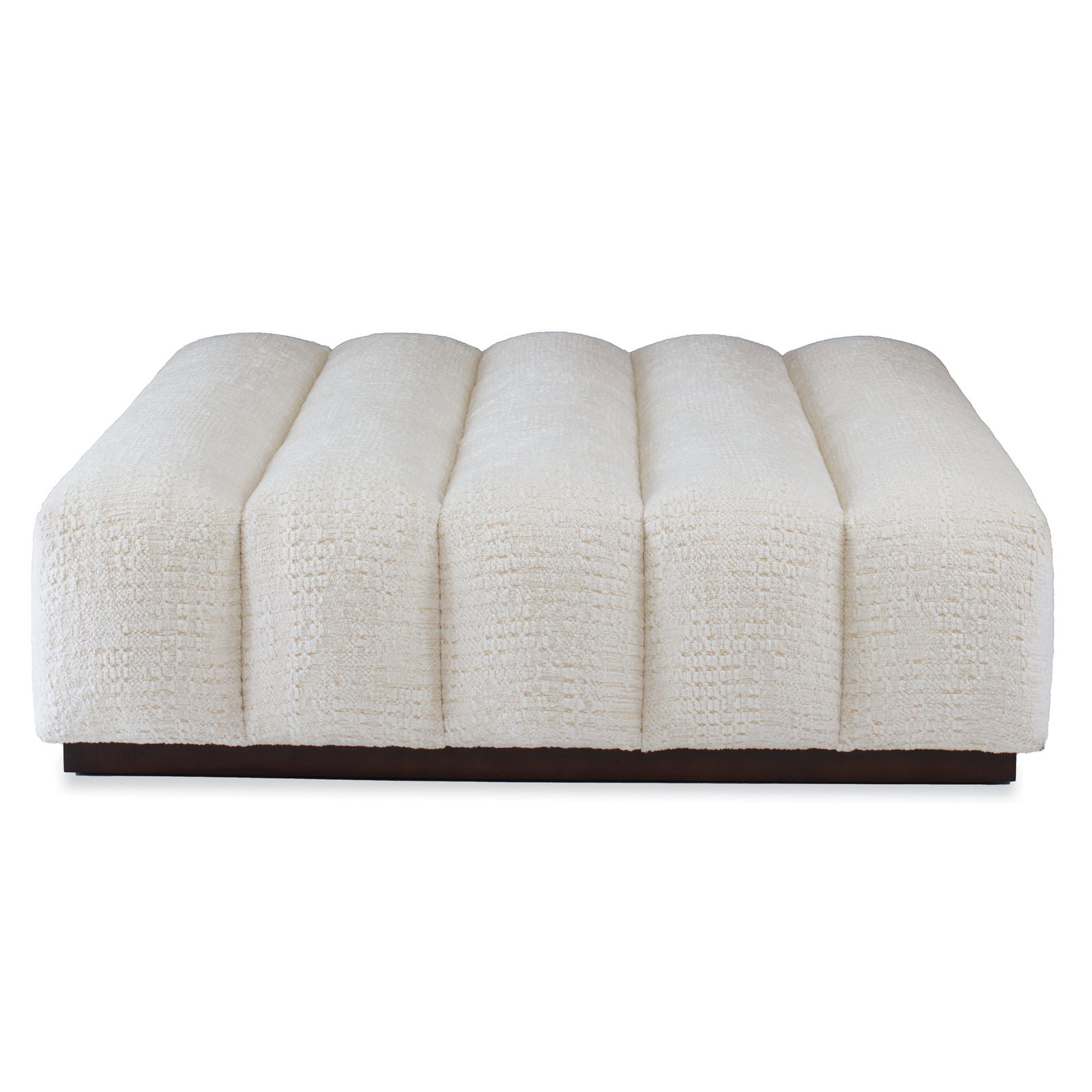 Product Description: Ambella Home 161-00 Channeled Ottoman - This large cocktail ottoman is tailored with deep, dramatic channels and raised on a Beech wood plinth base.