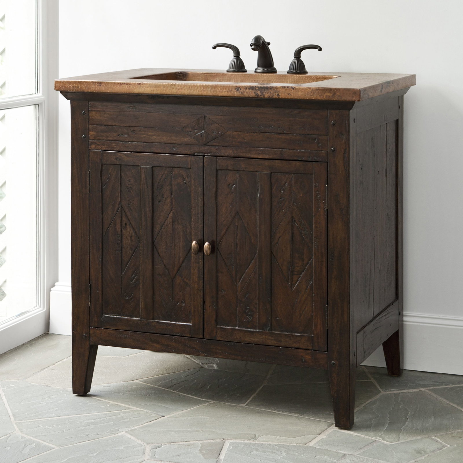 Product Description: Ambella Home 17518-110-309 Cobre Sink Chest - Finished in mahogany, this petite sink chest features an integrated hand-made copper top, sink and backsplash. Use with non-overflow style drain system.