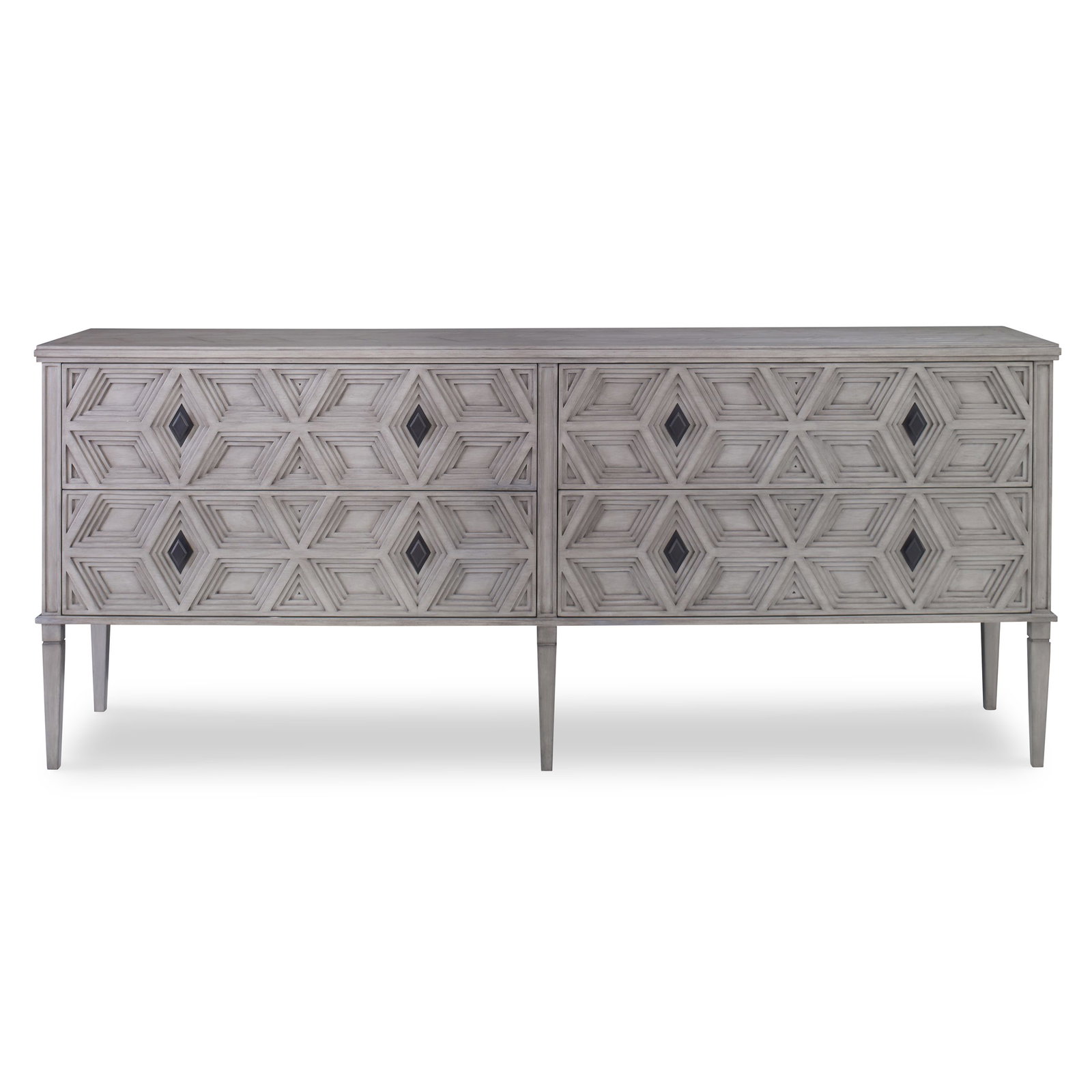 Product Description: Ambella Home 17558-630-011 Slant Multi Use Cabinet - Hand carved of Mindi wood solids and veneer, this cabinet features a dramatic stepped diamond pattern on its front and sides. The top mimics the diamond pattern in a rich veneer inlay. Diamond shaped pulls accent the four drawers.