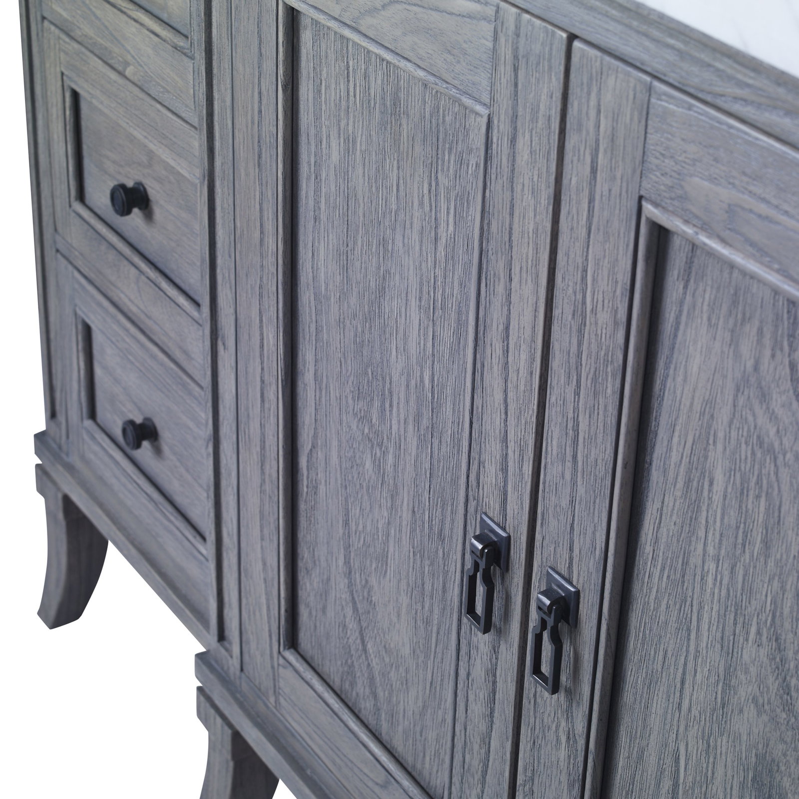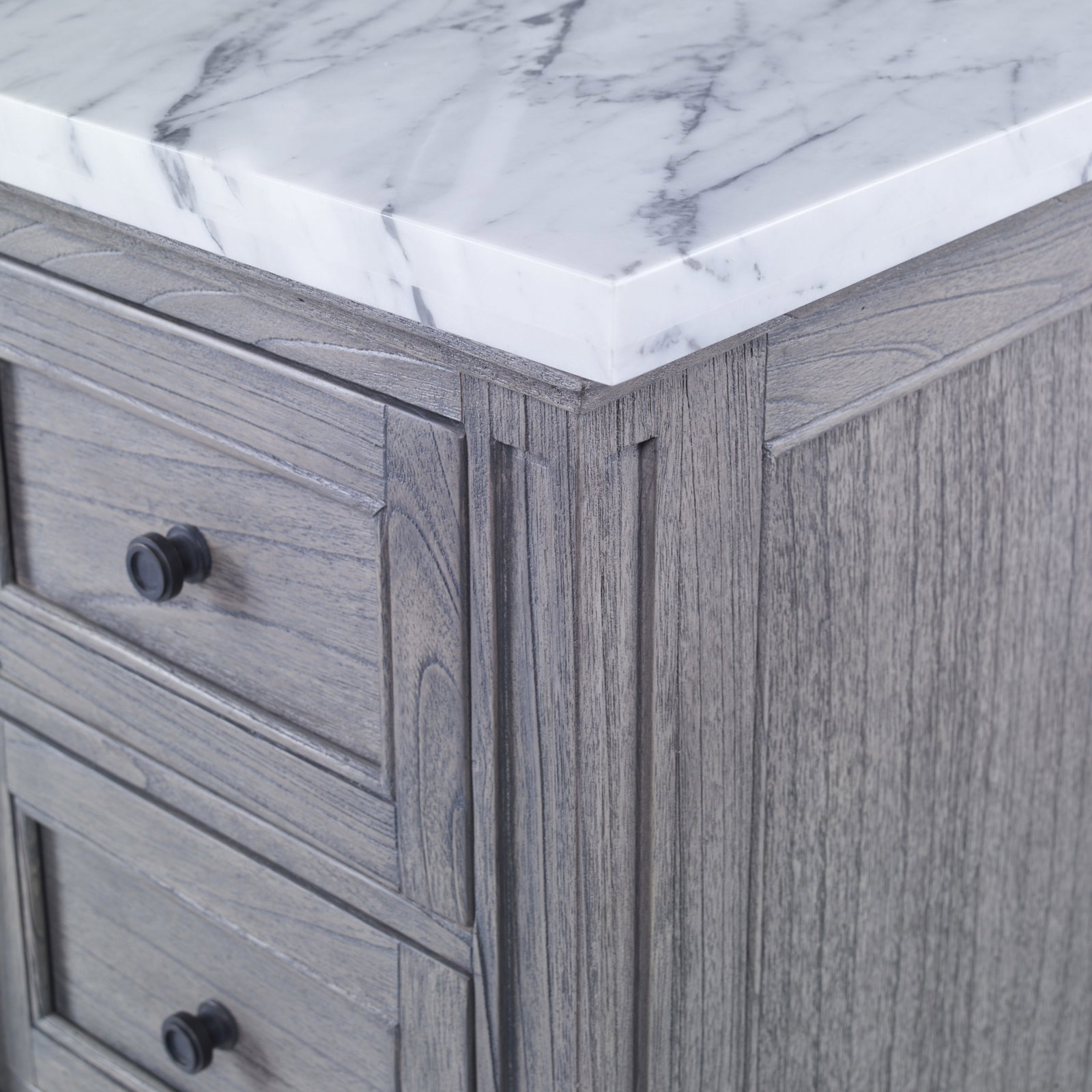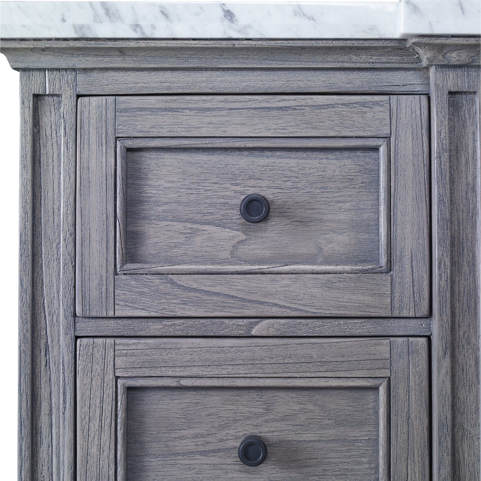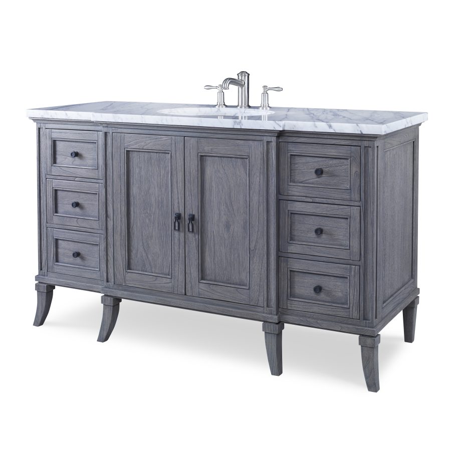 Product Description: Ambella Home 17567-110-501 Danbury Sink Chest - A large six drawer, two door sink chest with a wire brushed grey finish. Made from Mindi wood. Solid brass hardware. Statuario marble top.
