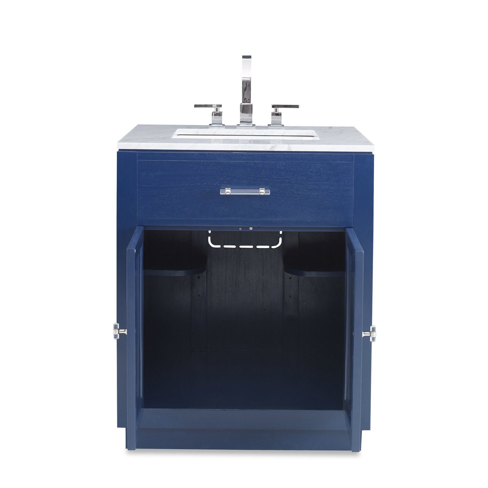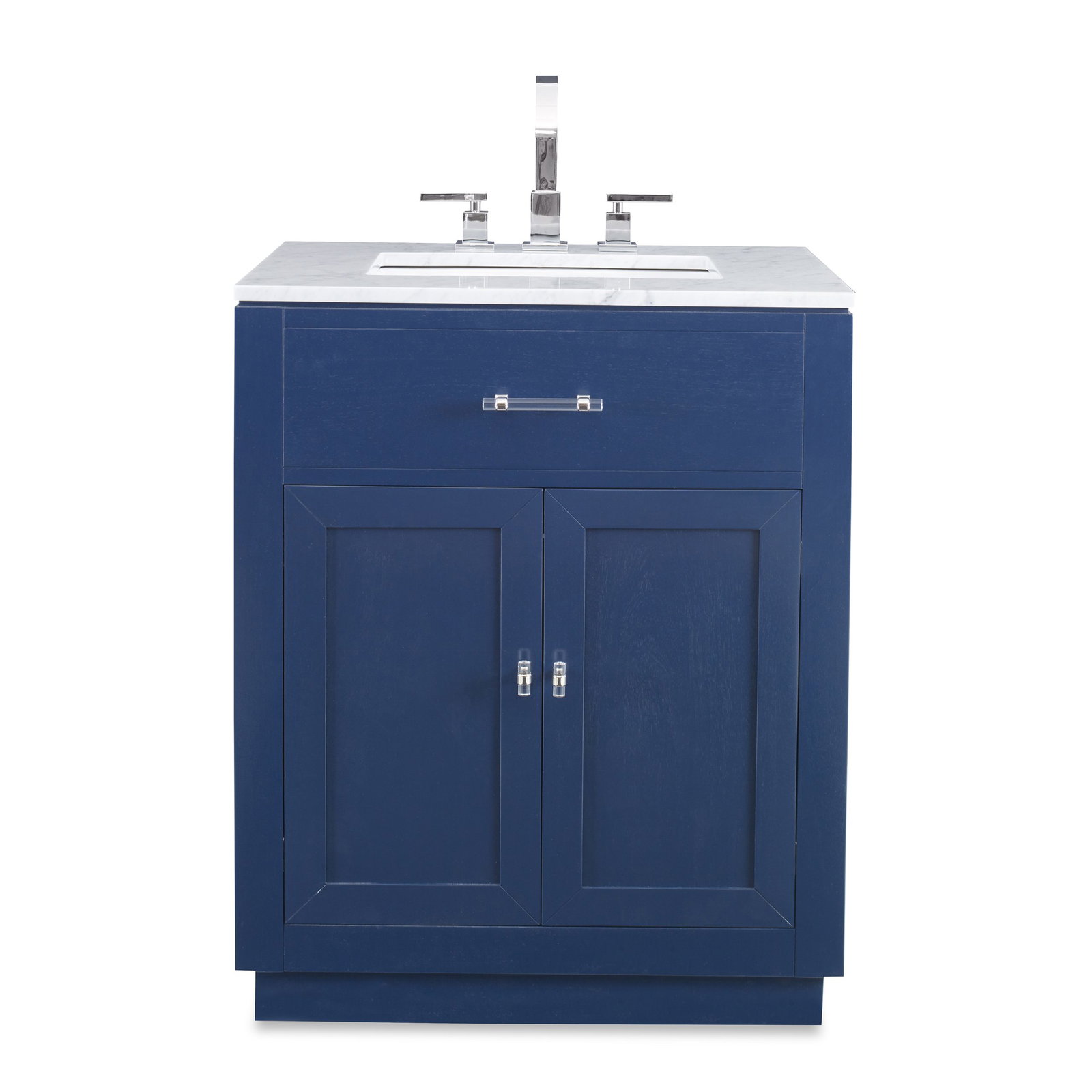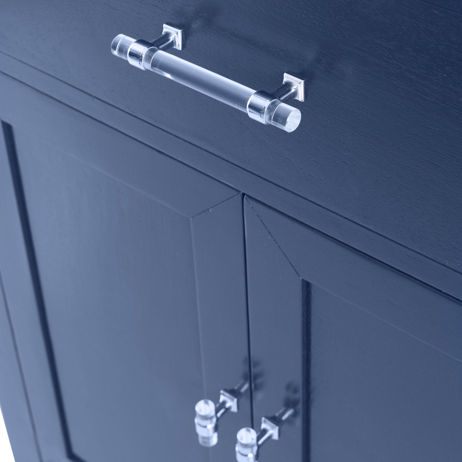 Product Description: Ambella Home 17597-110-121 Hutton Petite Sink Chest Cadet Blue - This sink chest, crafted of Mahogany, features a white marble top and white porcelain sink. Acrylic hardware with your choice of polished chrome or polished brass accents is highlighted on shaker style doors. Shown in cadet blue.