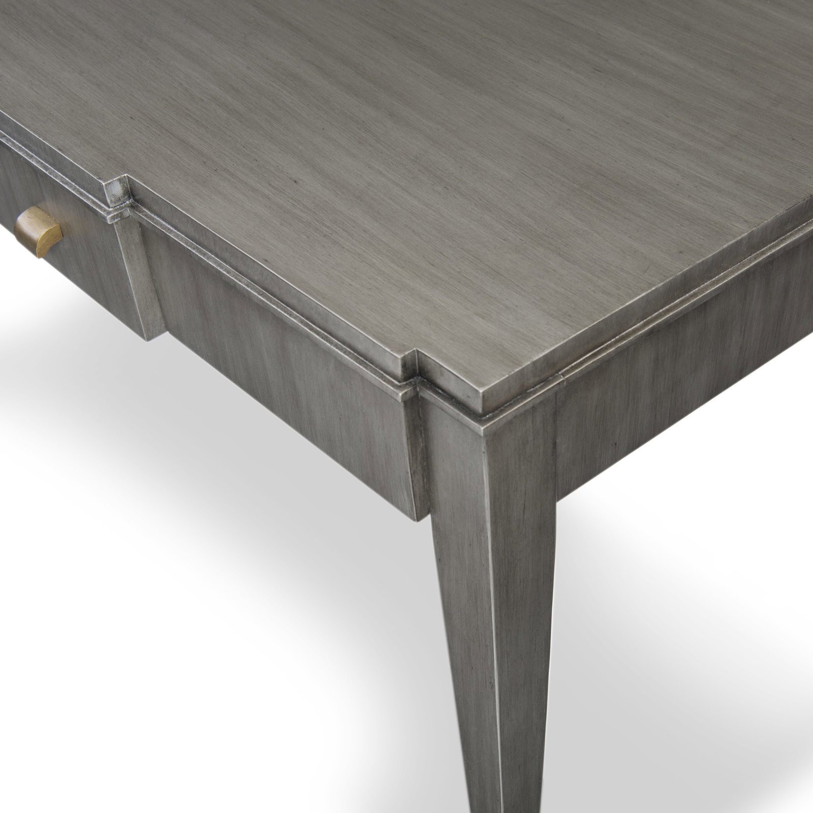 Product Description: Ambella Home 24104-300-248 Terrace Writing Desk Grey - This writing desk features a unique stepped top silhouette. Mahogany solids and Mahogany veneer are finished in grey. Brass trim accents the top. One drawer with a soft close mechanism is included.