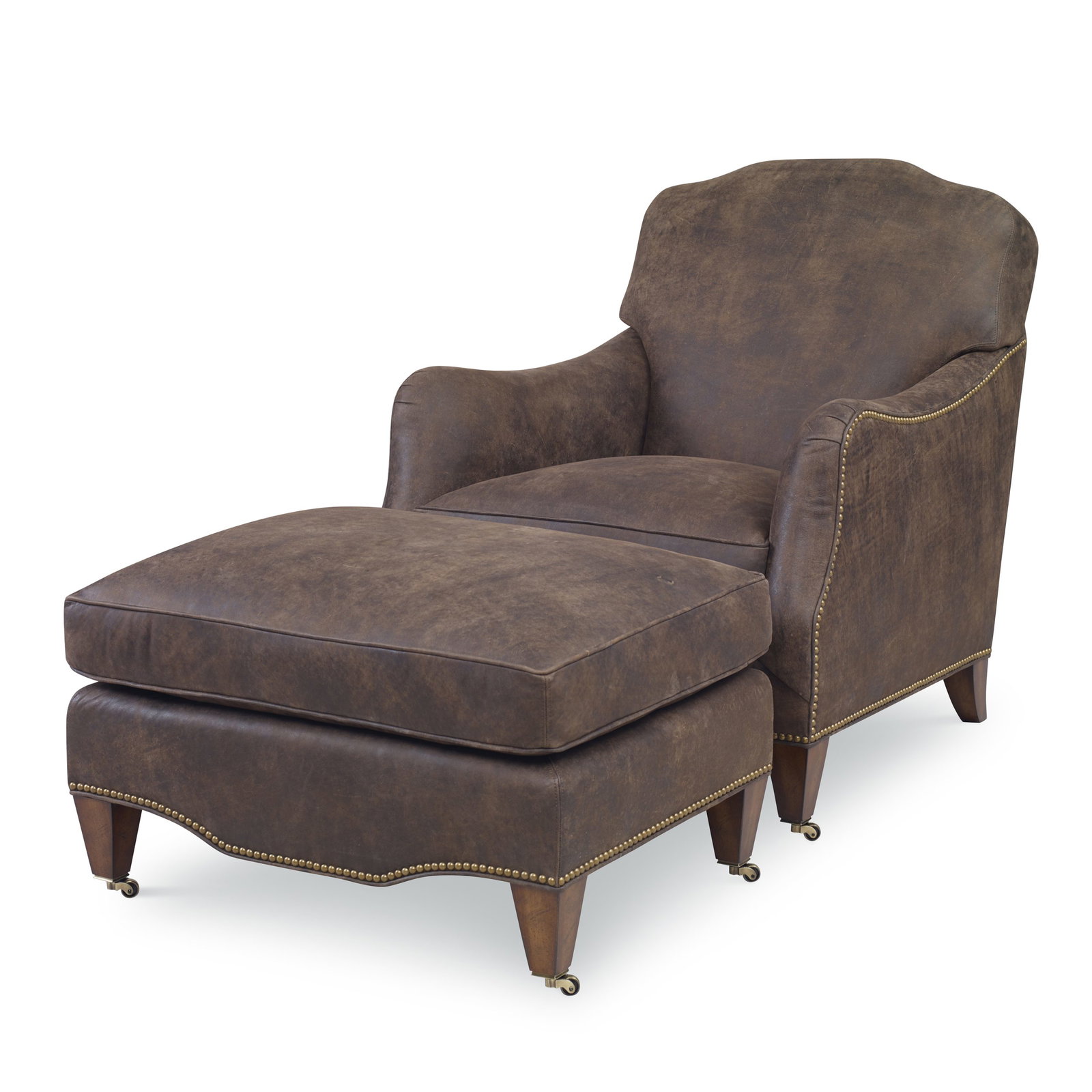 Product Description: Ambella Home 254-50 Gideon Ottoman - The coordinating ottoman to the 254-00 Gideon Chair. An attached seat cushion is raised on solid Beech tapered legs with brass ferrules and casters.