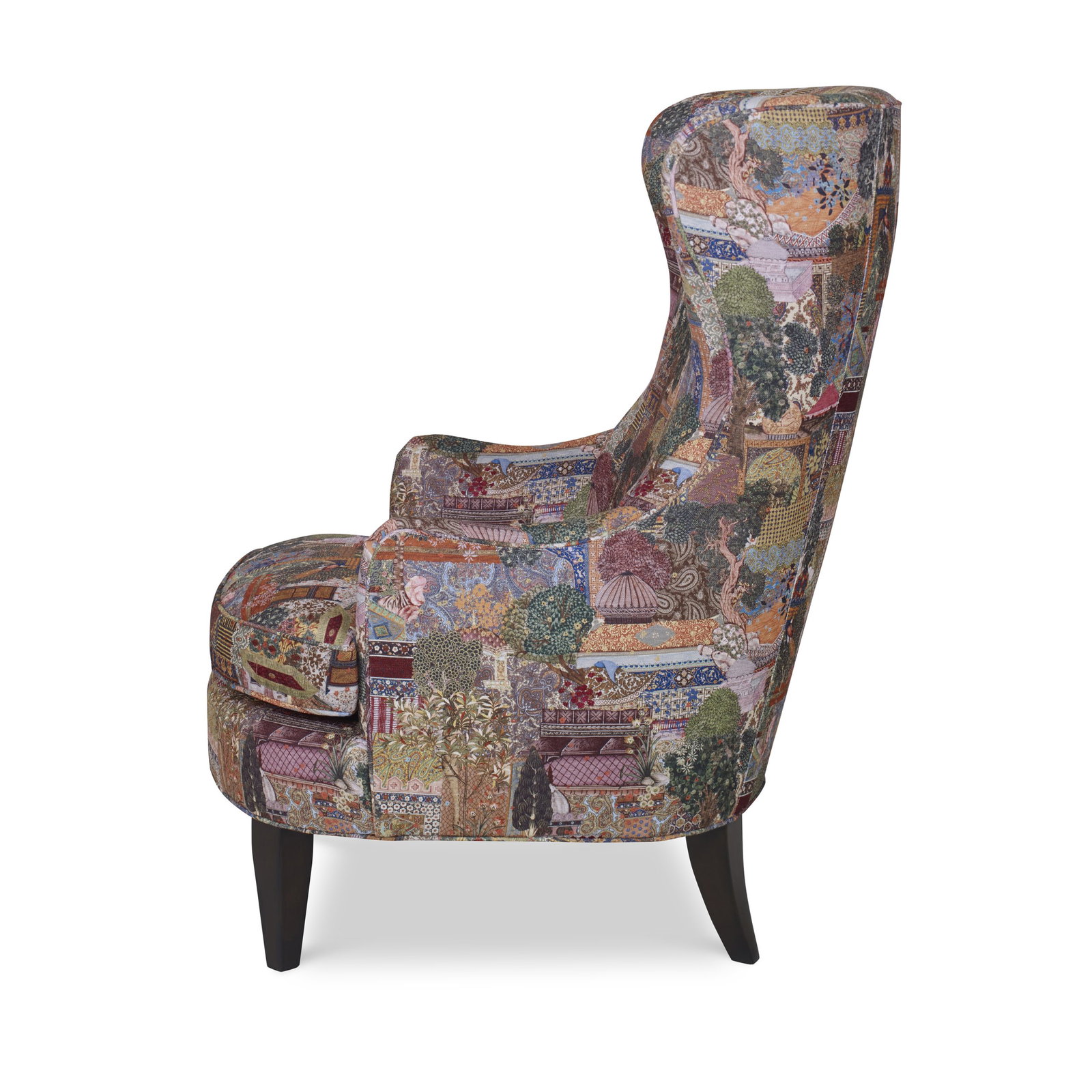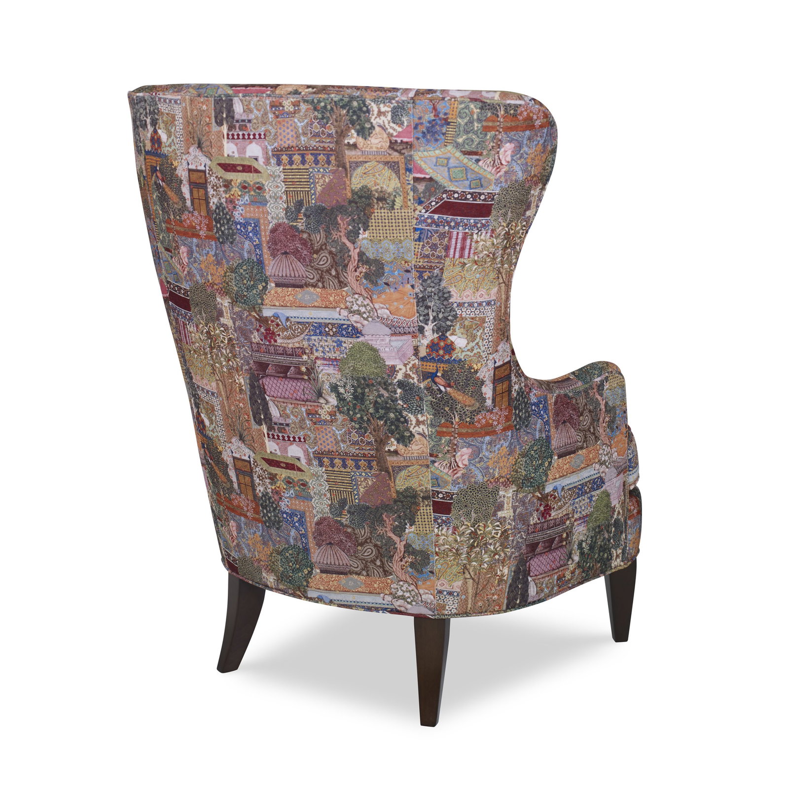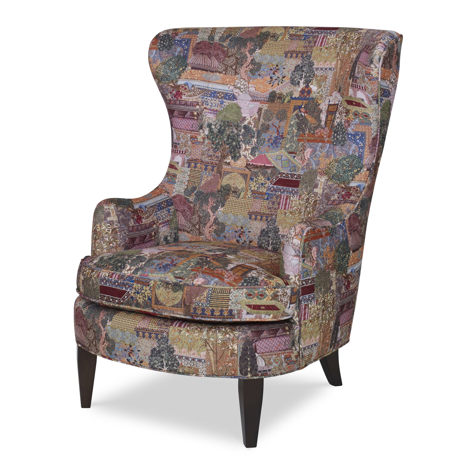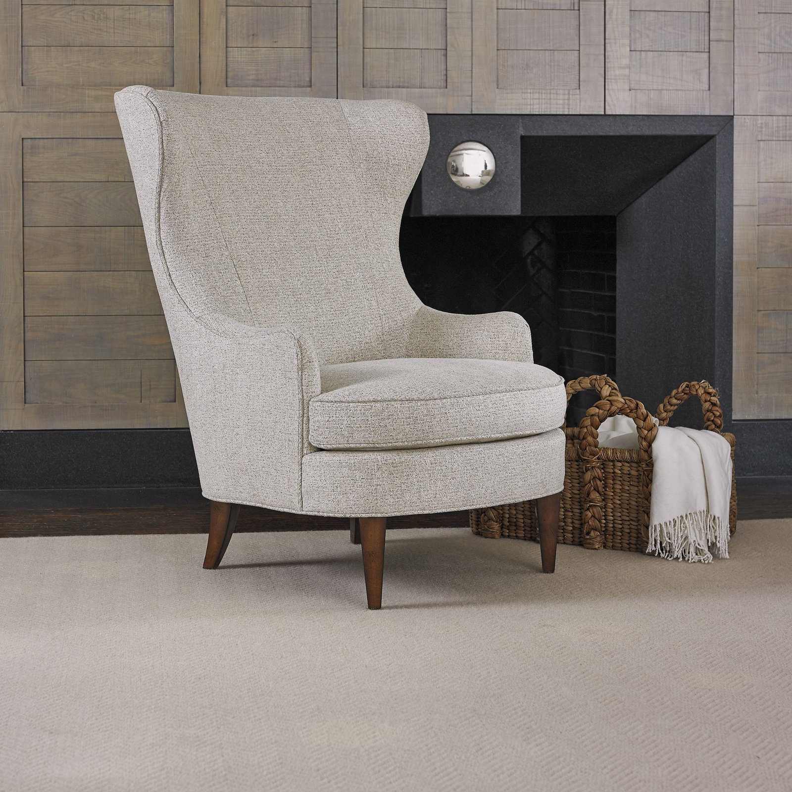Product Description: Ambella Home 265-00 Crawford Wing Chair - Wing chairs were originally invented to protect the sitter with their oversized wings from drafts in old English Manors. This updated take on a wing chair features flared rounded wings raised above slim arms and a curving seat. Built in lumbar support in the tight back creates a supportive sit. A boxed seat cushion is raised on tall tapering beech wood legs.
