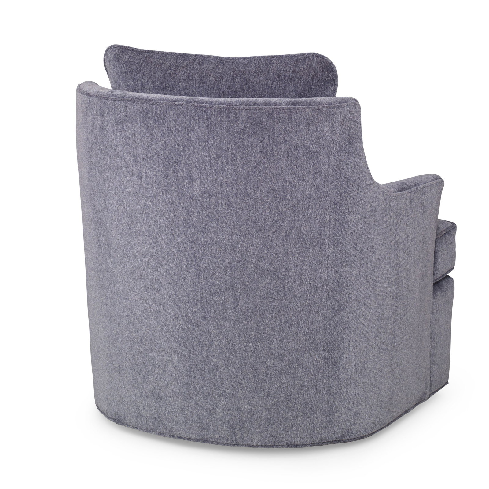Product Description: Ambella Home 267-00 Bradley Chair Swivel - A small scale swivel chair featuring a knife edge back pillow, boxed T seat cushion and slightly flaring arms.