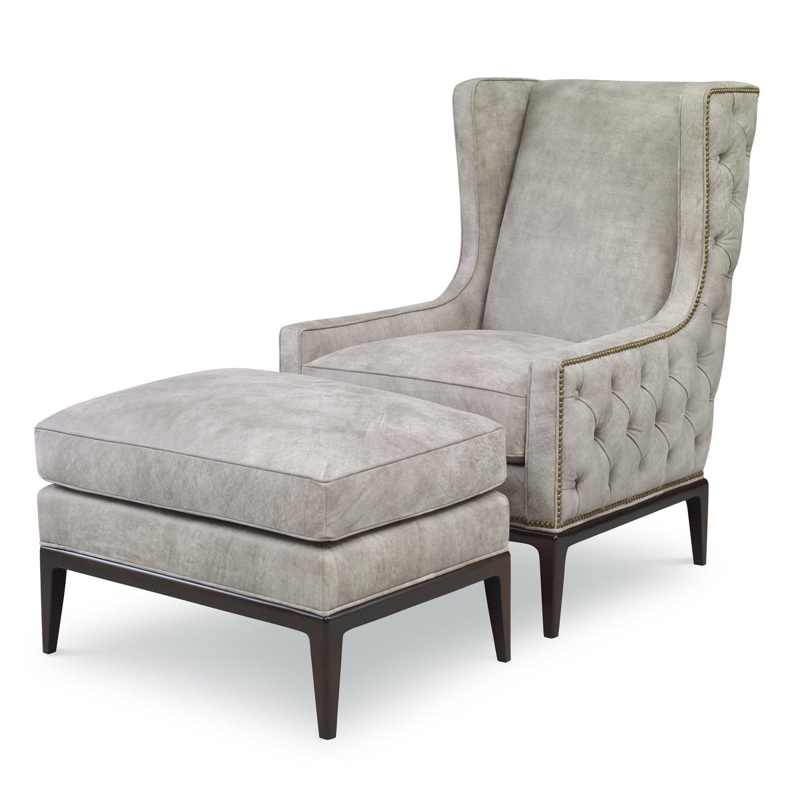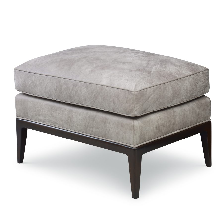 Product Description: Ambella Home 296-50 Claxton Ottoman - The coordinating ottoman to the 296-00. An attached, boxed seat cushion is raised on a solid Beech carved base and legs.