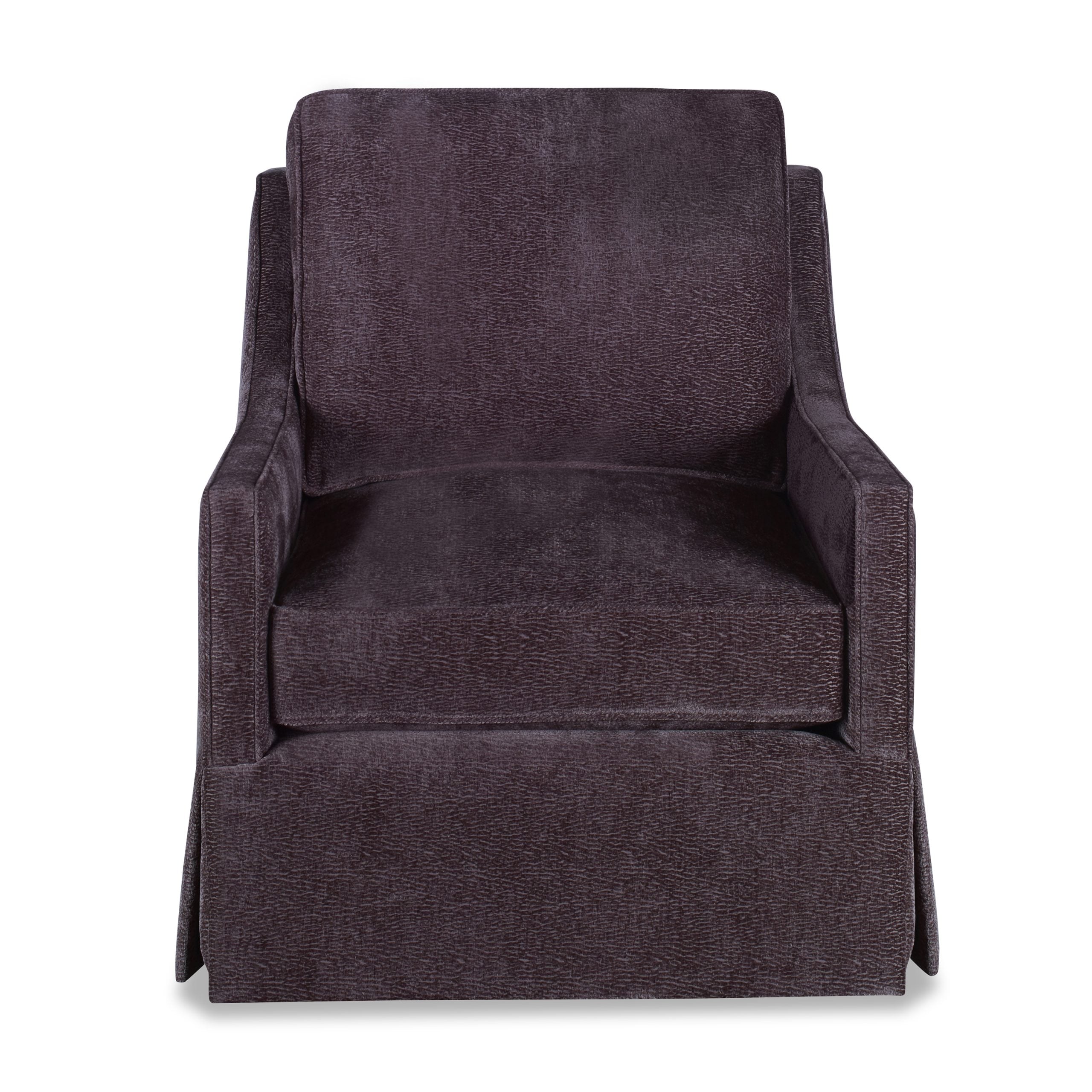 Product Description: Ambella Home 427-00 Sonoma Swivel Chair Skirted - Slim arms flow into modified wings which envelop a boxed back pillow. A boxed seat cushion is raised over a waterfall skirt and standard swivel base. The serpentine shaped back creates interesting views from all sides.