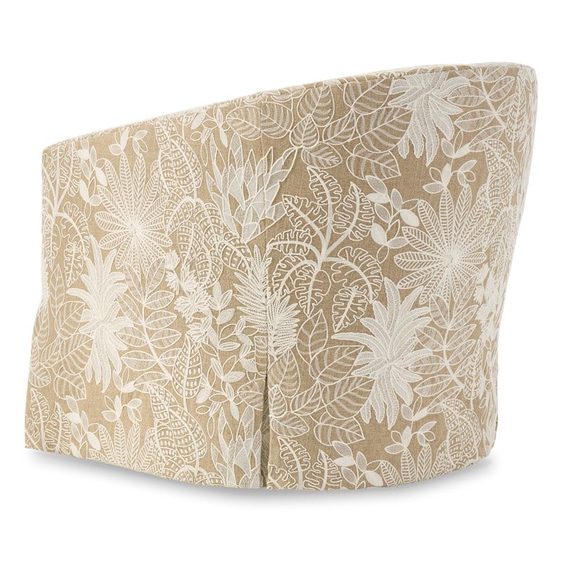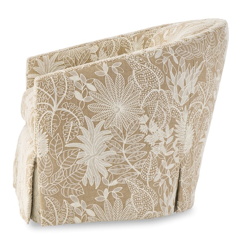 Product Description: Ambella Home 439-00 August Skirted Swivel Chair - Based on the best selling Archer Swivel Chair, this small scale tub chair includes a boxed seat cushion and waterfall skirt. Standard with a swivel.