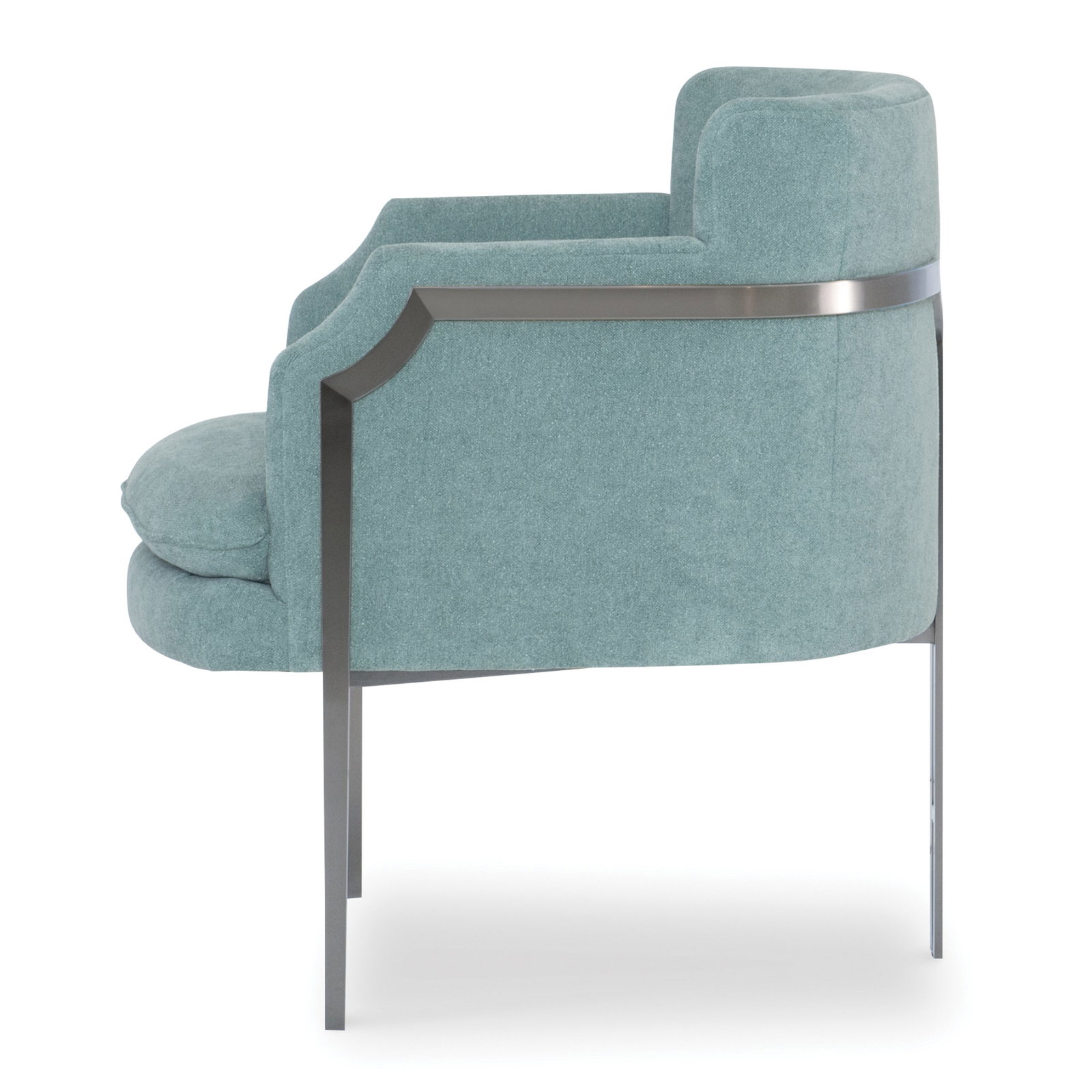 Product Description: Ambella Home 467-00 Jasser Chair Silver - This petite accent chair features an upholstered frame and knife edge seat cushion suspended on a stainless steel frame.