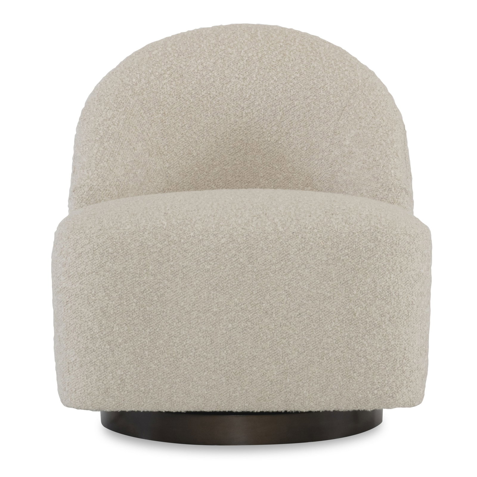 Product Description: Ambella Home 491-00 Remi Chair - This curving slipper chair includes a tight seat and back, raised over a circular wood plinth. Standard with a swivel.