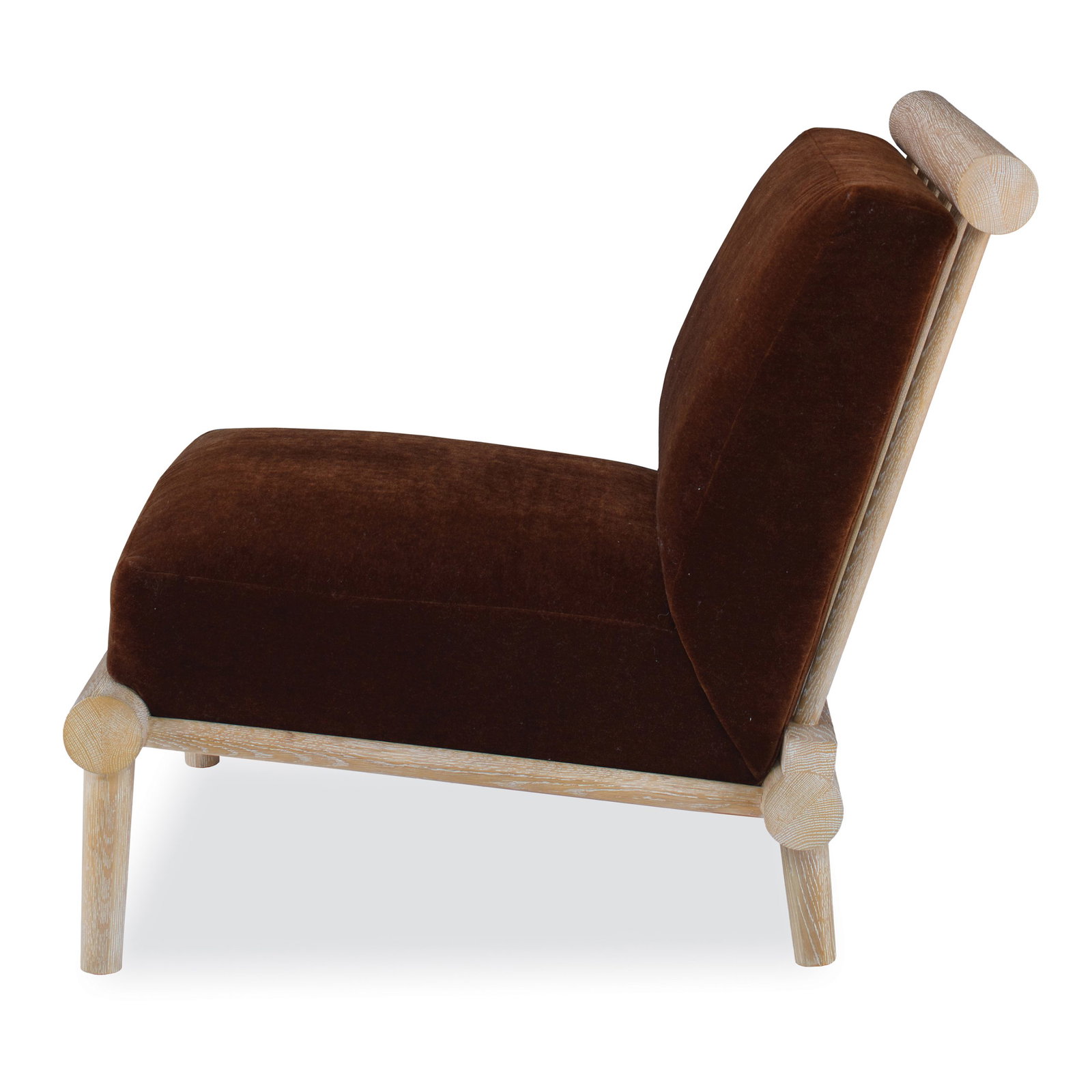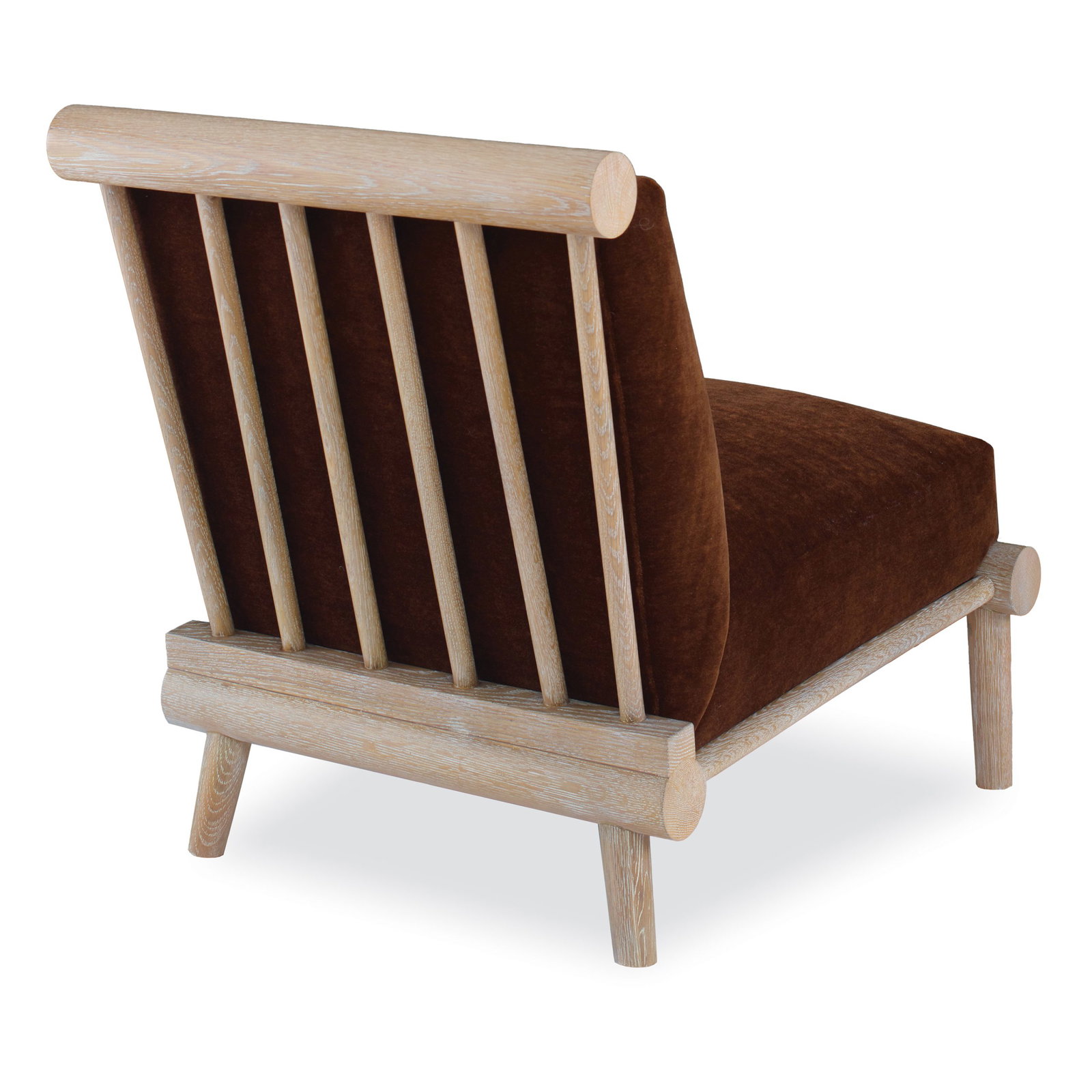 Product Description: Ambella Home 502-00 Lodge Chair - This Oak framed lounge chair includes turned back styles raised over an exposed wood frame. The seat cushion and back pillow are attached. Standard in ceruse finish.
