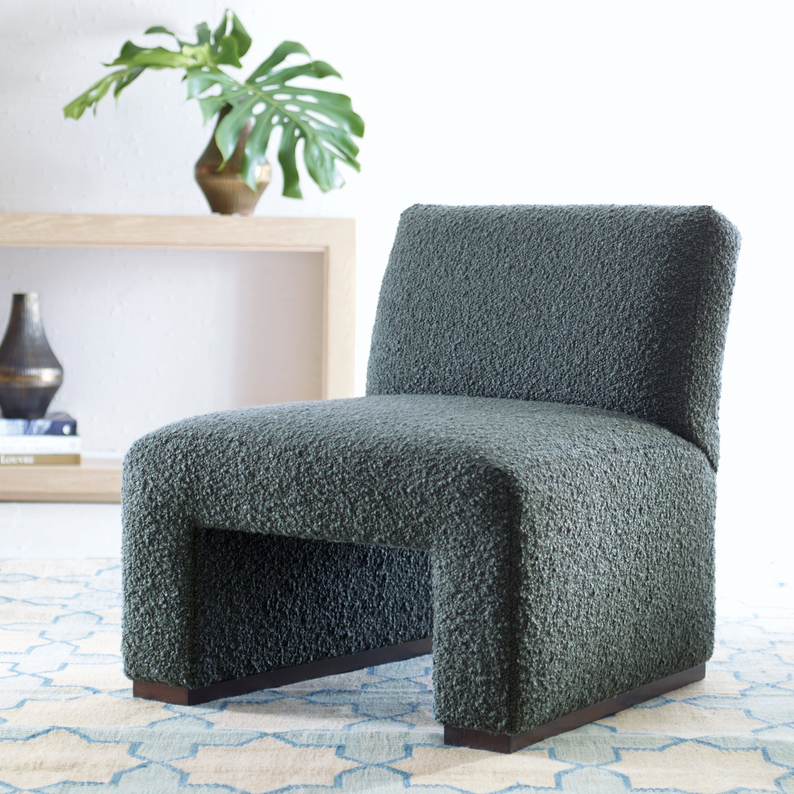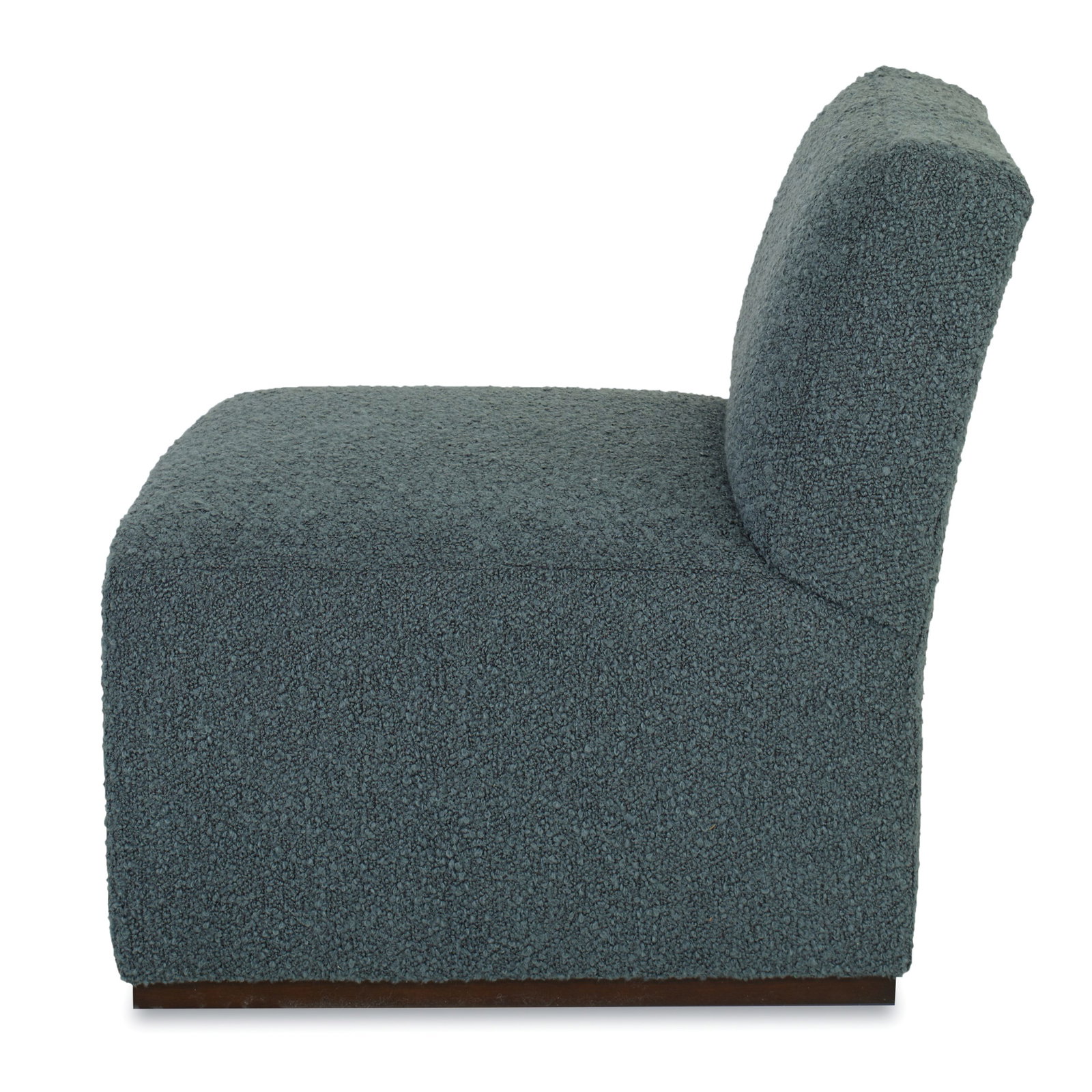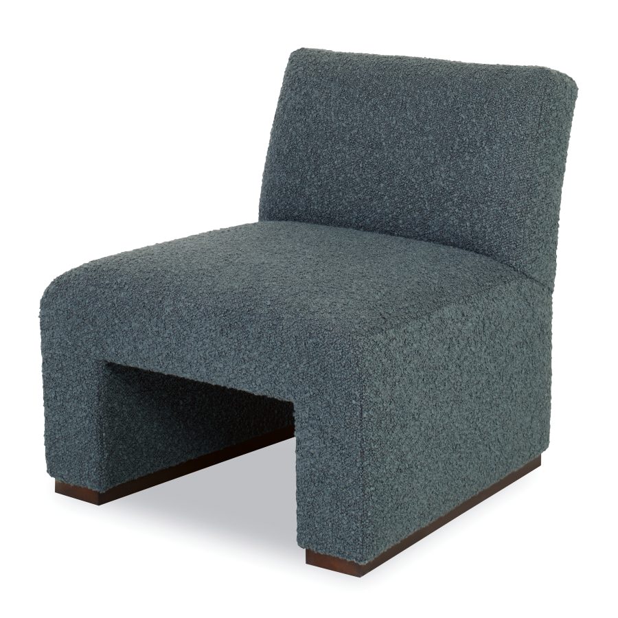 Product Description: Ambella Home 504-00 Franki Chair - This fully upholstered slipper chair is shaped when the seat bends to form the legs. The legs terminate in a Beech wood sled base.