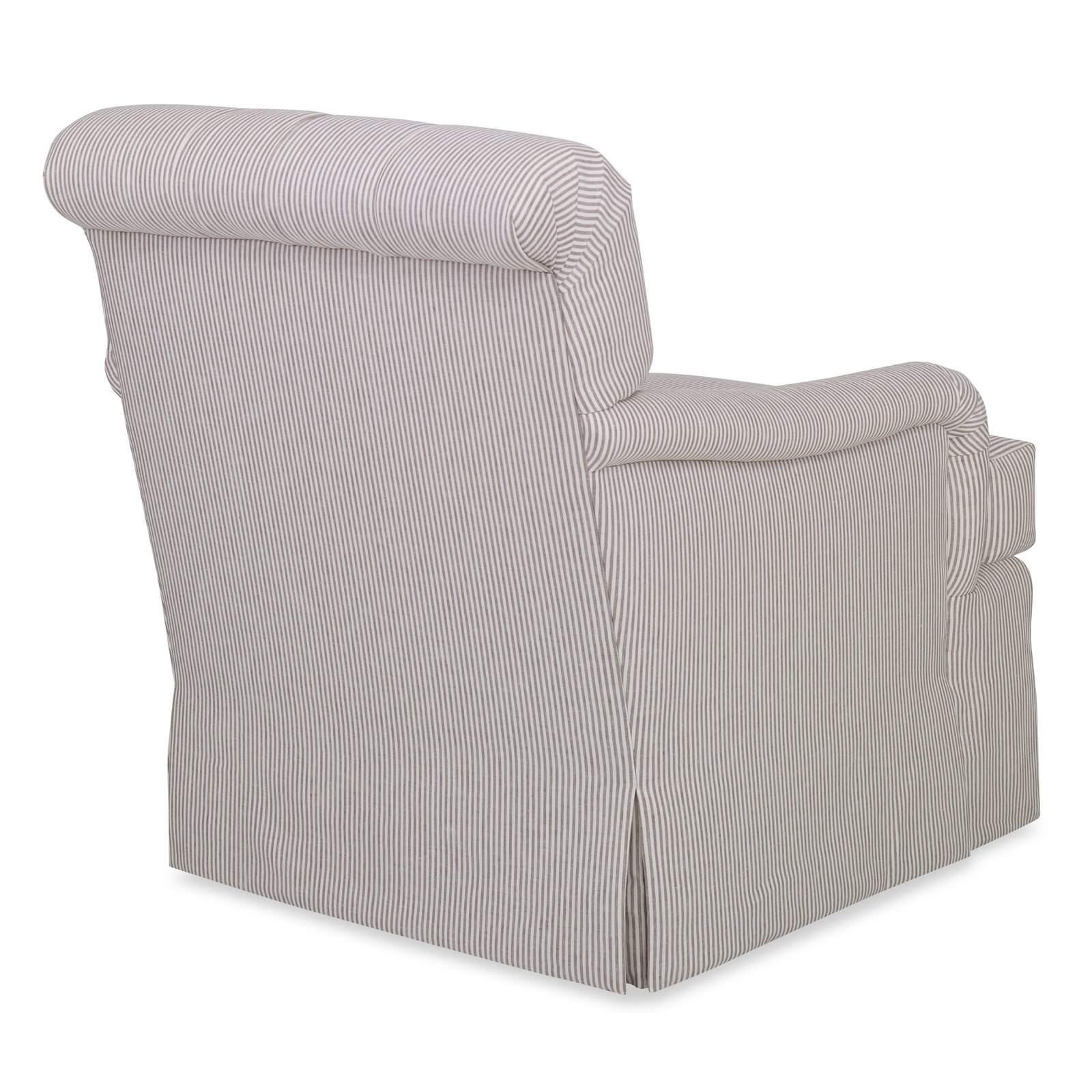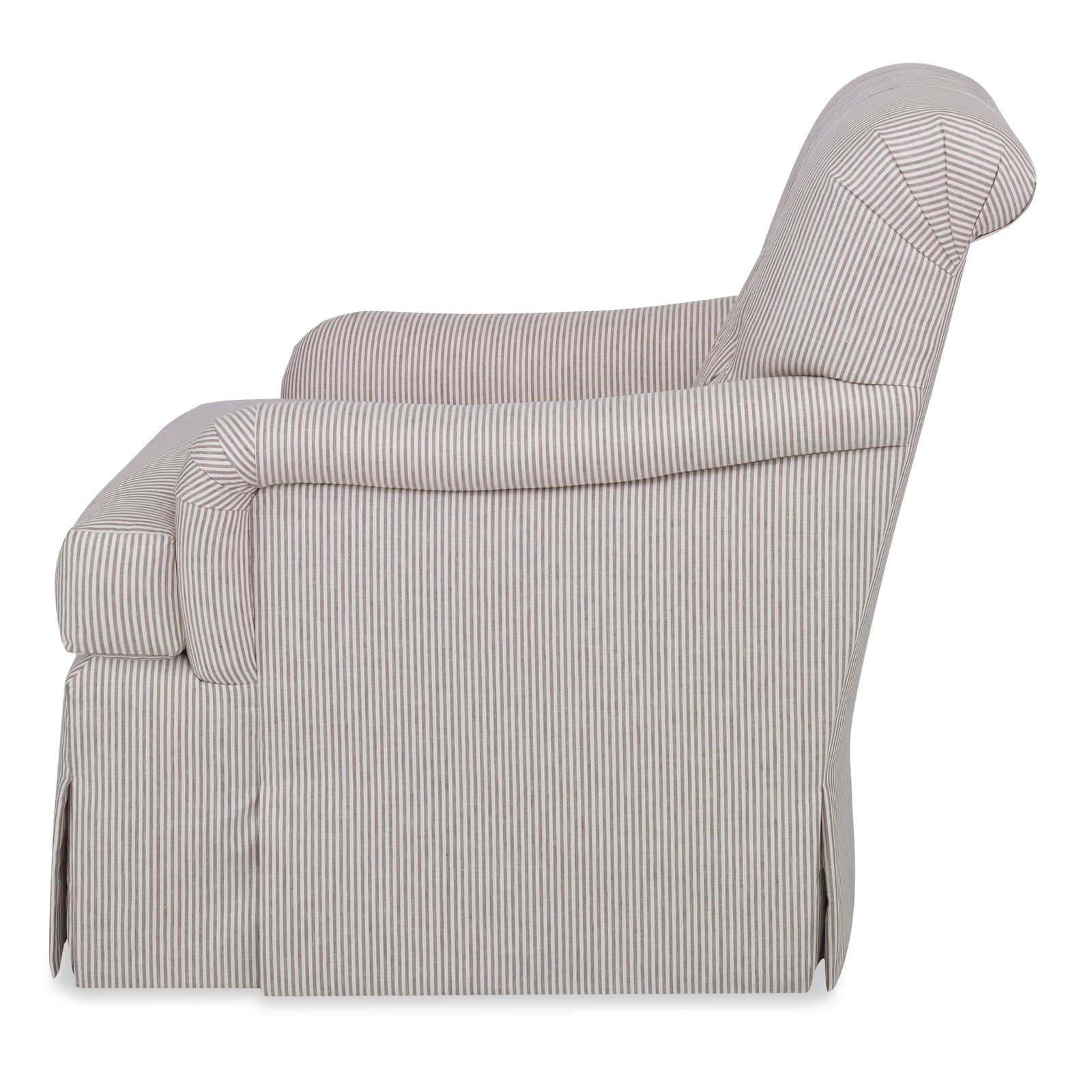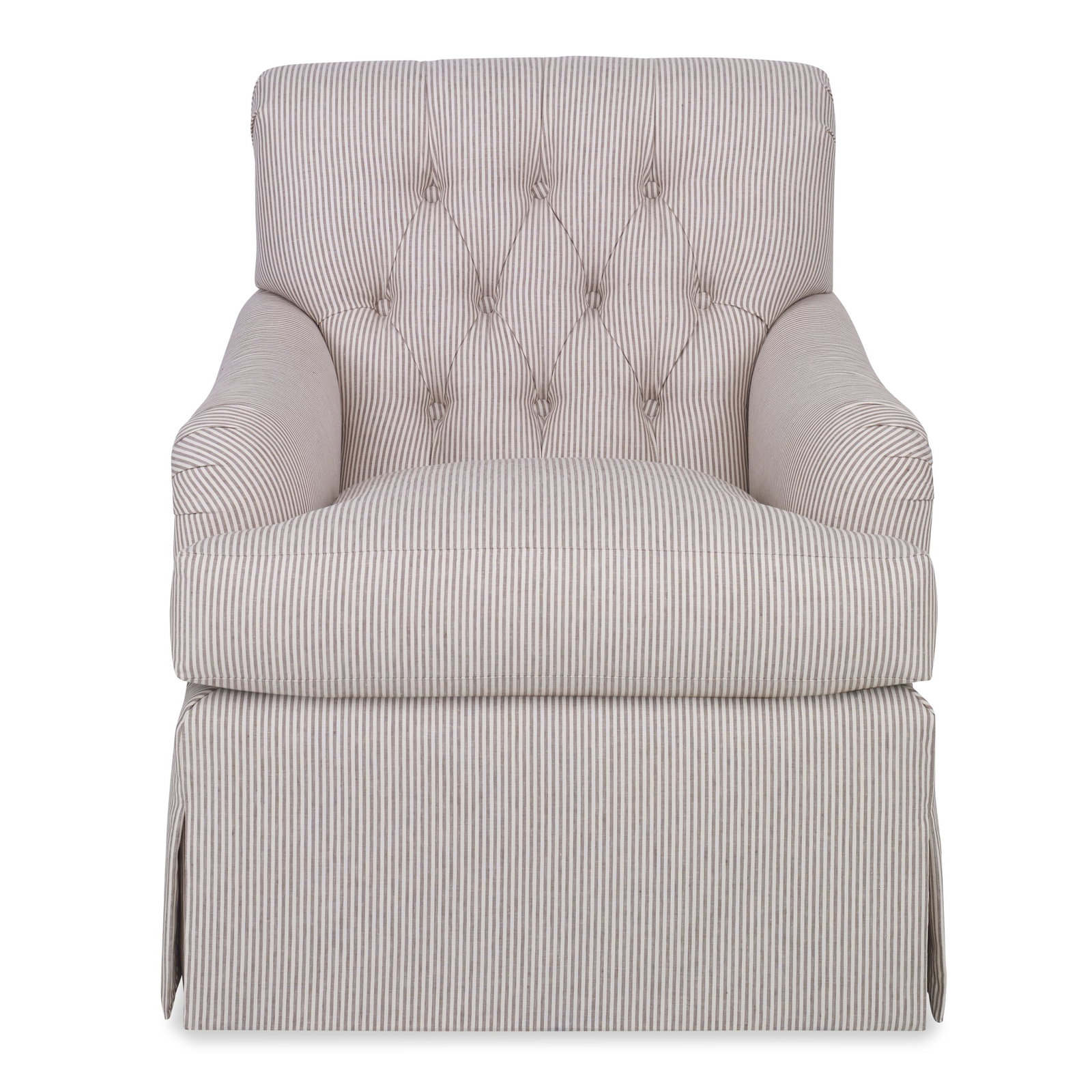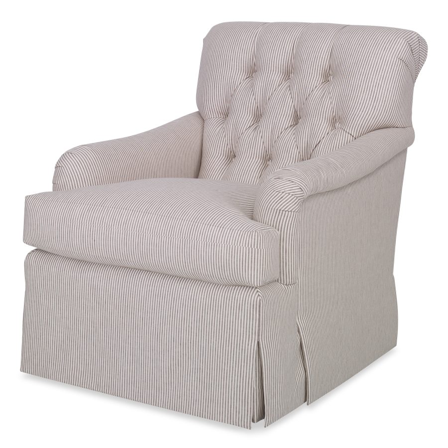 Product Description: Ambella Home 532-00 Steele Chair - This chair features a Charles of London arm and a deeply diamond tufted back. The back terminates in a pleated top roll. A boxed seat cushion is raised over a waterfall skirt.