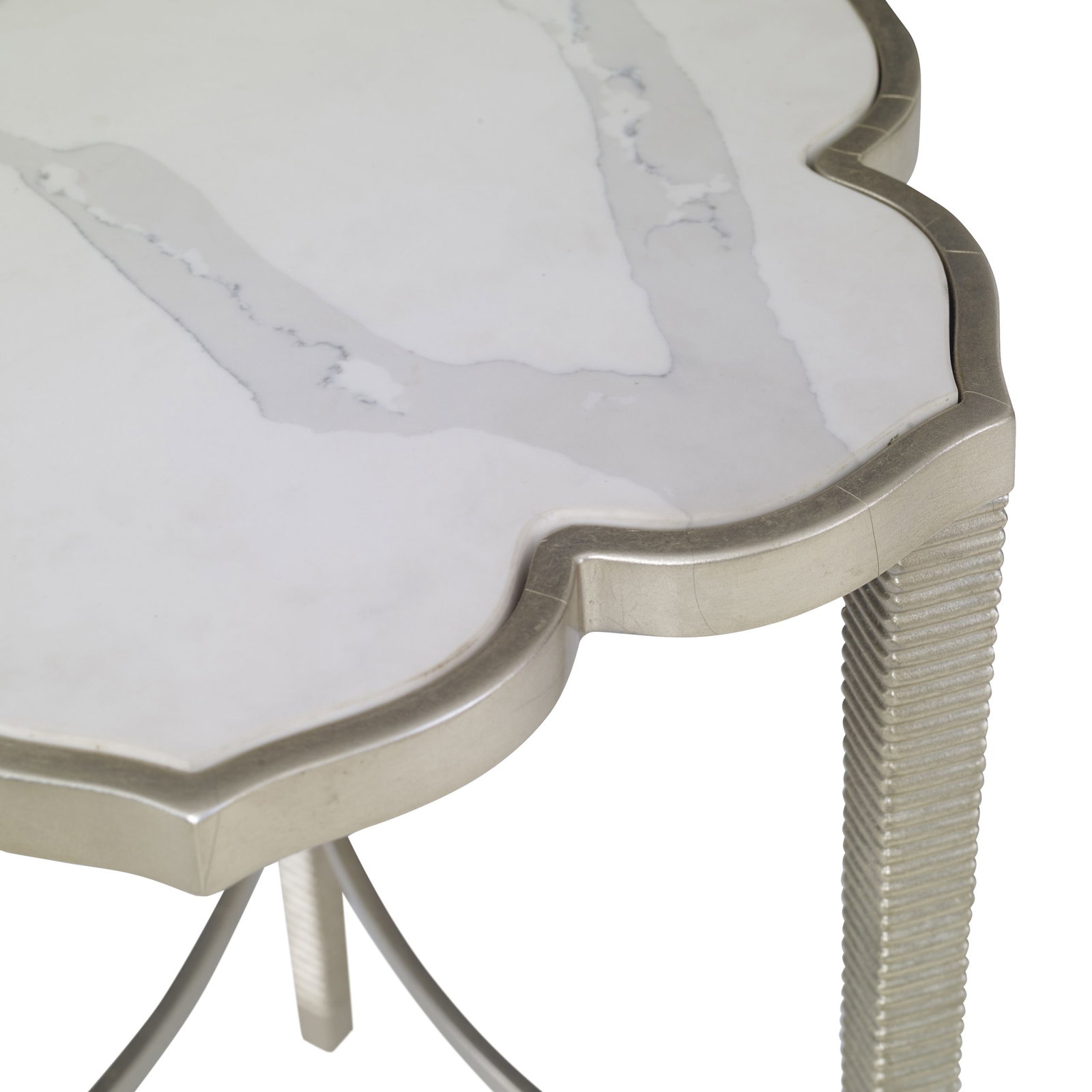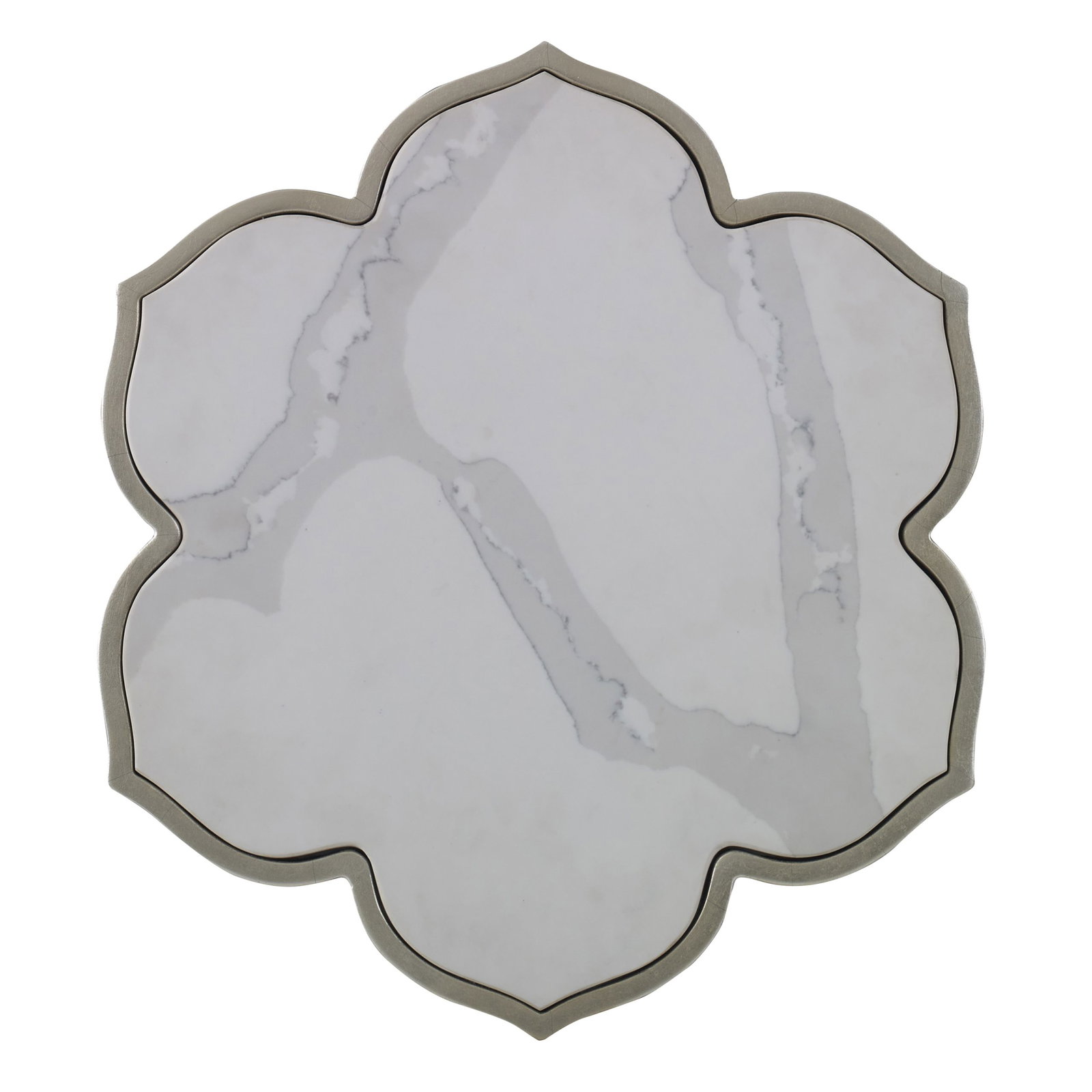 Product Description: Ambella Home 65030-900-001 Camelia Drinks Table - A carrera marble top cut in the shape of a flower is raised on textured champagne leaf legs. Designed by Shayla Copas.