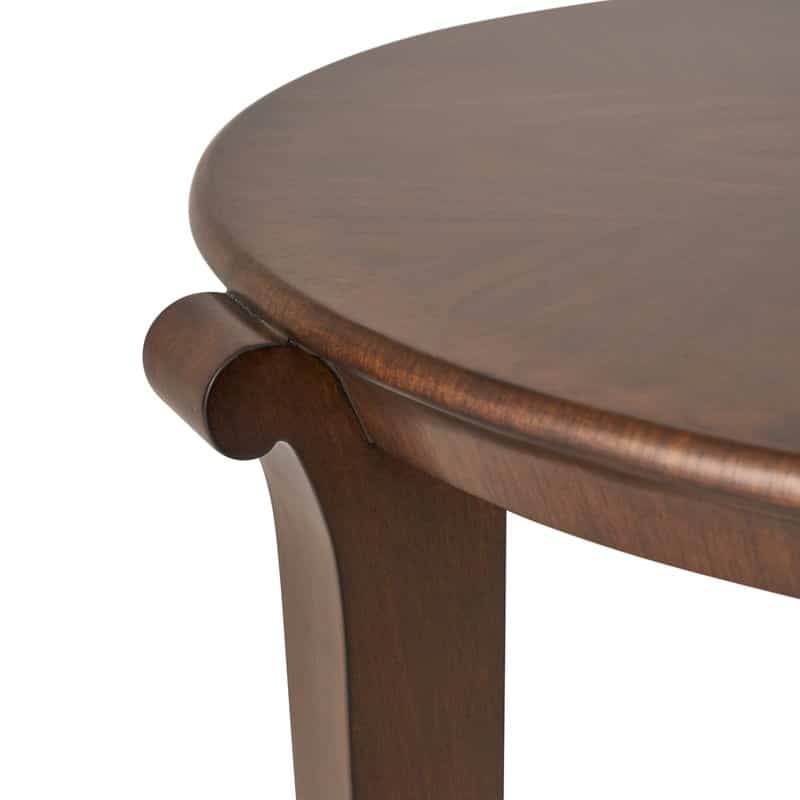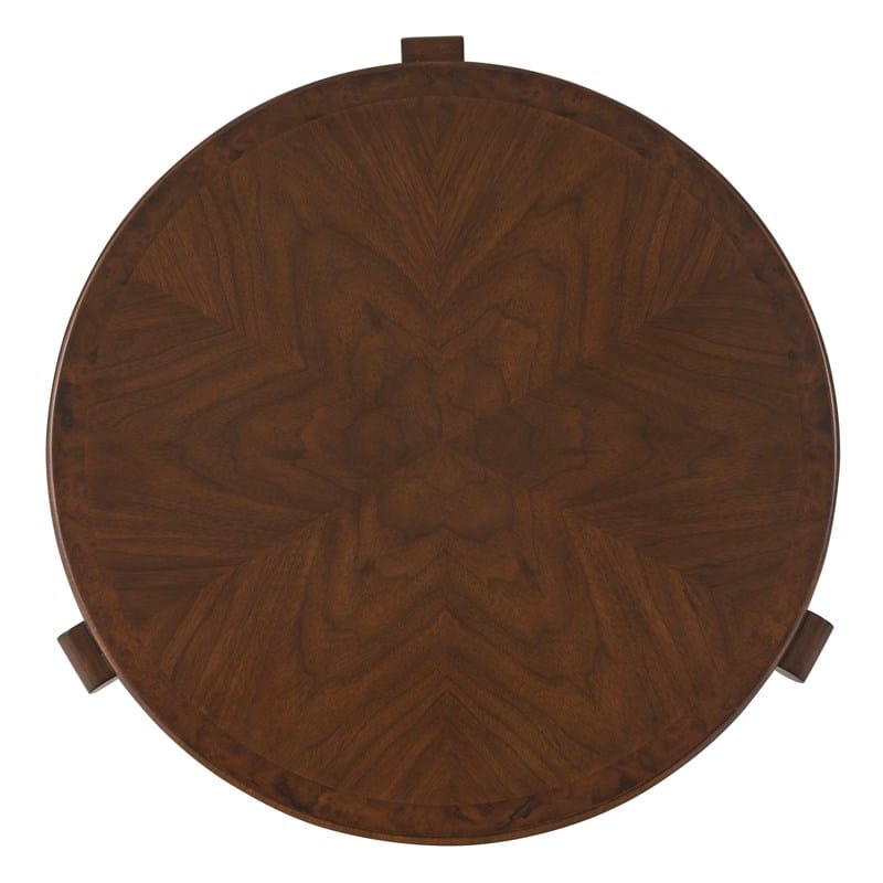 Product Description: Ambella Home 66022-900-001 Gretta End Table - This graceful, round end table is raised on three arching legs terminating in scrolling feet. Crafted from Walnut veneer. Radial matched Walnut veneer top.