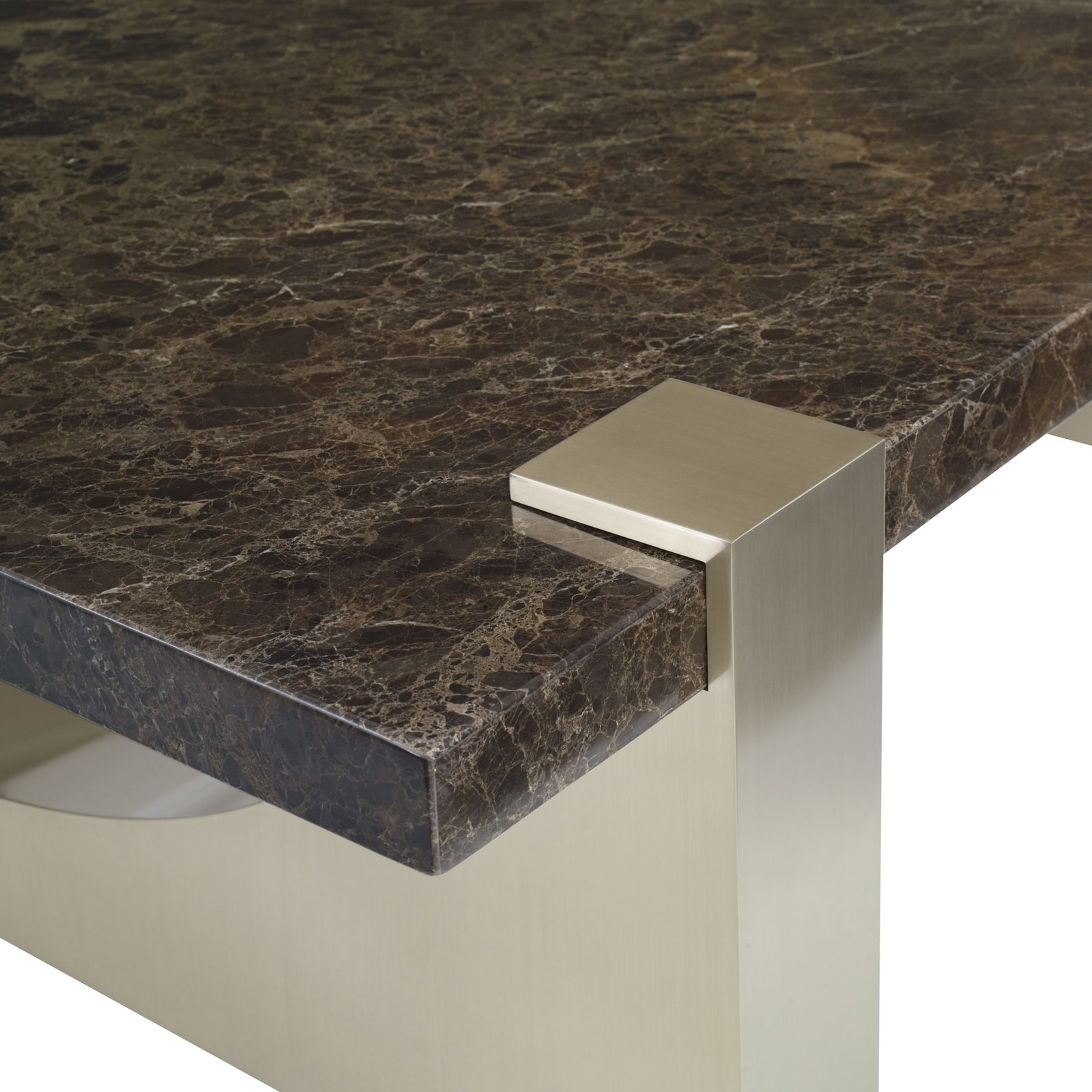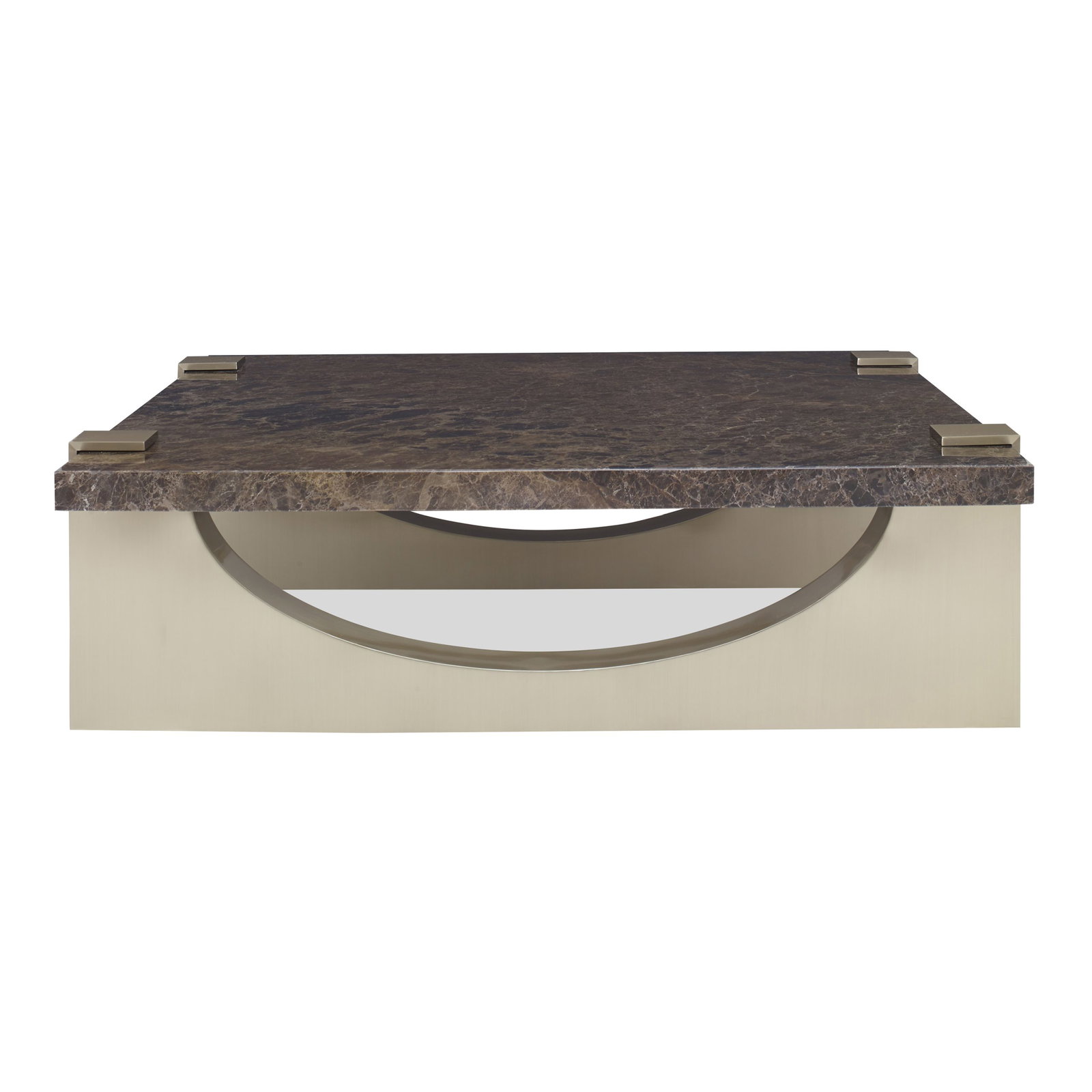 Product Description: Ambella Home 68027-920-001 Trenta Cocktail Table - This large cocktail table features a dark Emperador marble top with brass finished metal sled base legs. Arching cutouts in the base give this table and architectural feel.