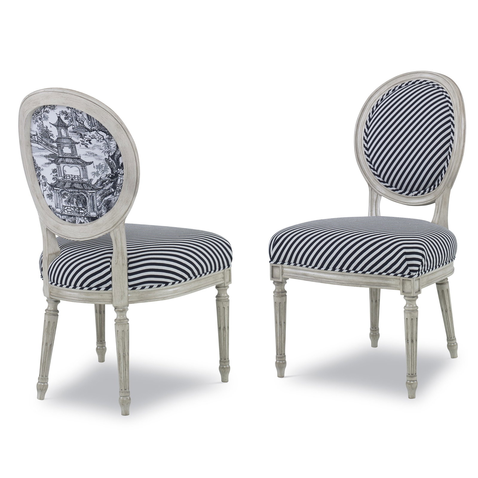 Product Description: Ambella Home 850-00 Dauphin Dining Room Side Chair - In interiors, the quintessential French chair is the oval back dining chair. Pictured in drawings, paintings, described in textbooks and fiction alike, this was the “it” chair of the 1700’s. Our version, available with or without arms, has a tight seat and upholstered back carved in detail from Beech. It is not only a dining chair, but can be included in living rooms as occasional chairs or as a desk chair when needed. Fluted legs support a carved seat rain and oval back.