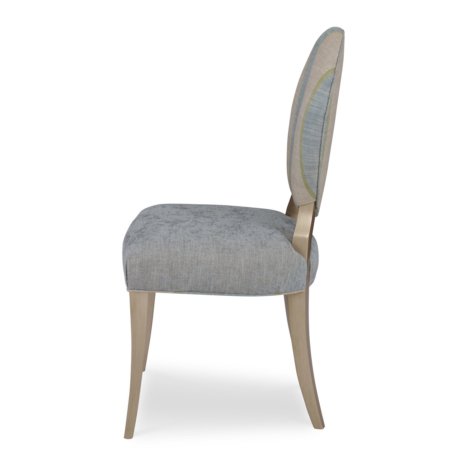Product Description: Ambella Home 853-00 Cameo Dining Room Chair - This armless dining room chair features an oval upholstered back raised over a tight seat. Serpentine beech wood legs complete the look.