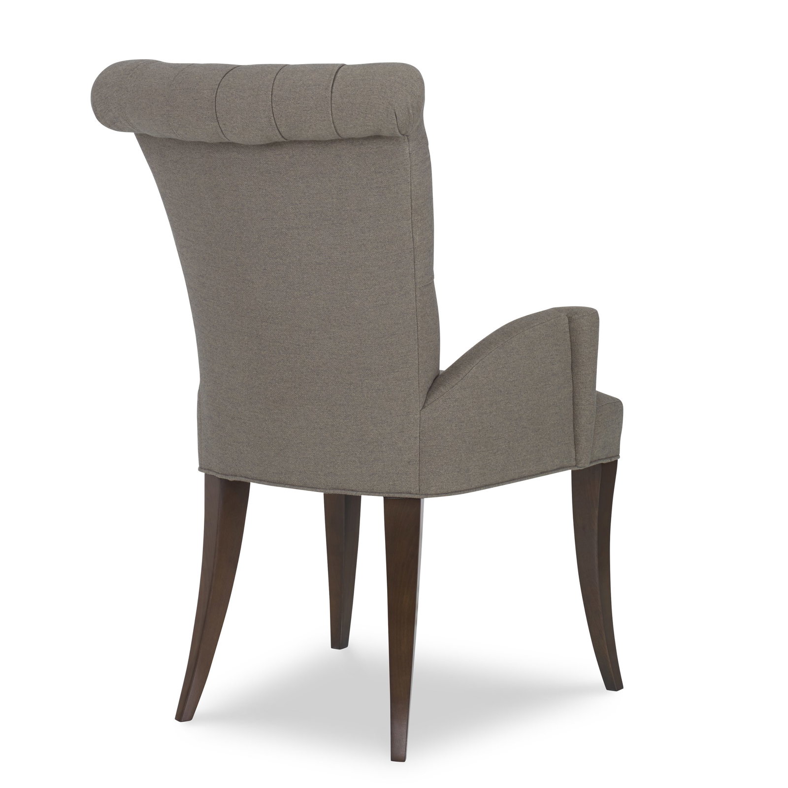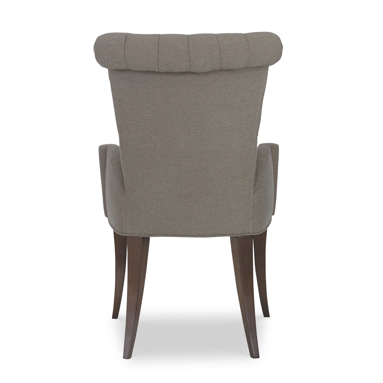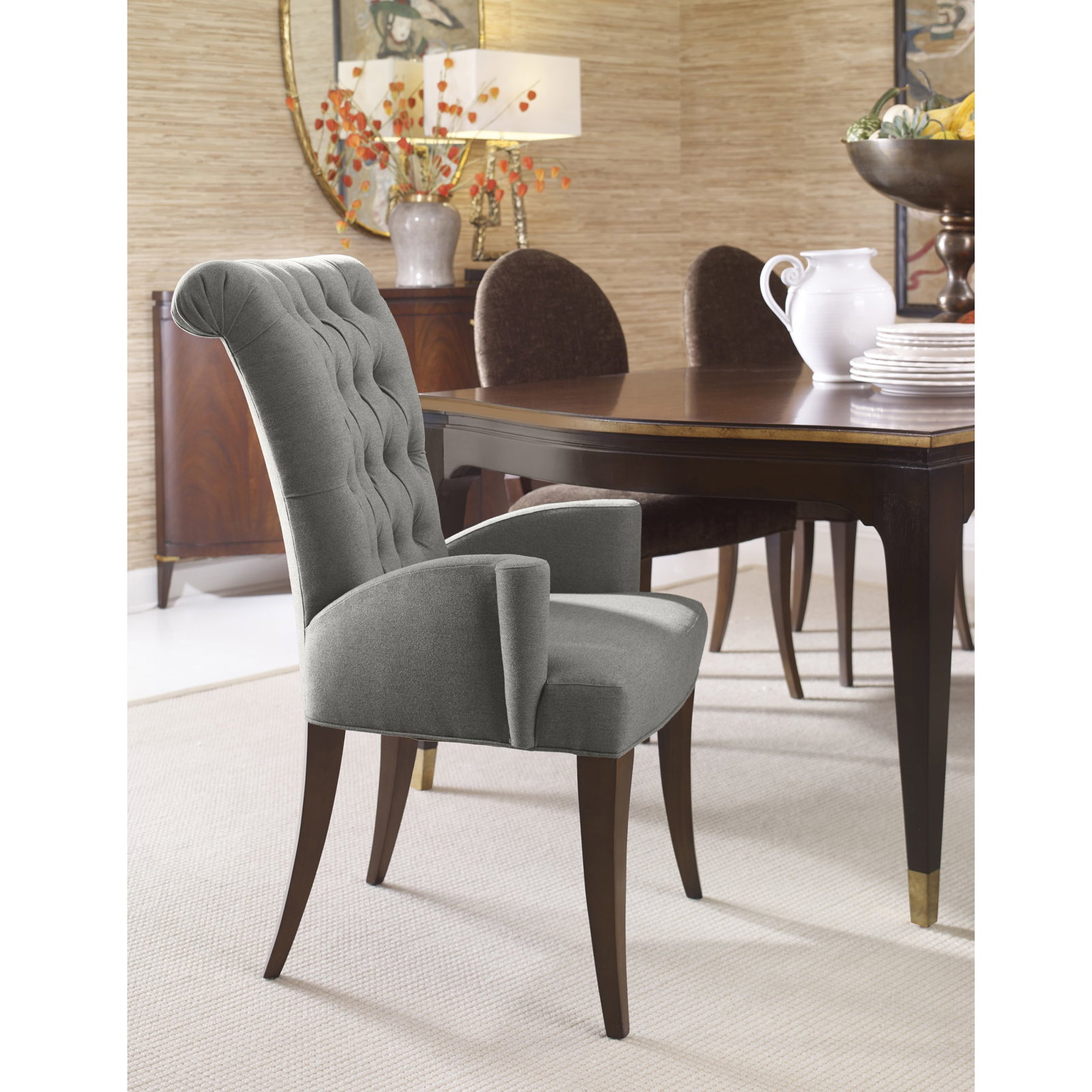 Product Description: Ambella Home 858-00 Gossamer Dining Room Chair - Inspired by our best selling Gossamer Wing Chair, this arm chair features a tall, tufted back and sloping arms terminating in scrolling posts. A tight seat is raised over tall, tapering, Beech wood legs.