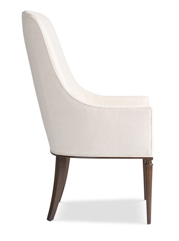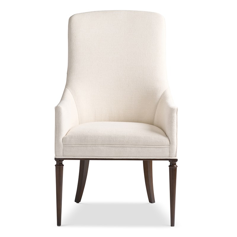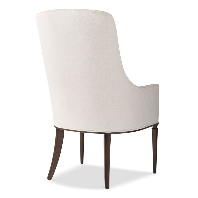 Product Description: Ambella Home 892-00 Tulane Host Chair - This tall back host chair includes upholstered arms and a curving back all raised over a tight boxed seat. A wood bead outlines the seat and is complemented by turned wood legs. Beech wood frame.
