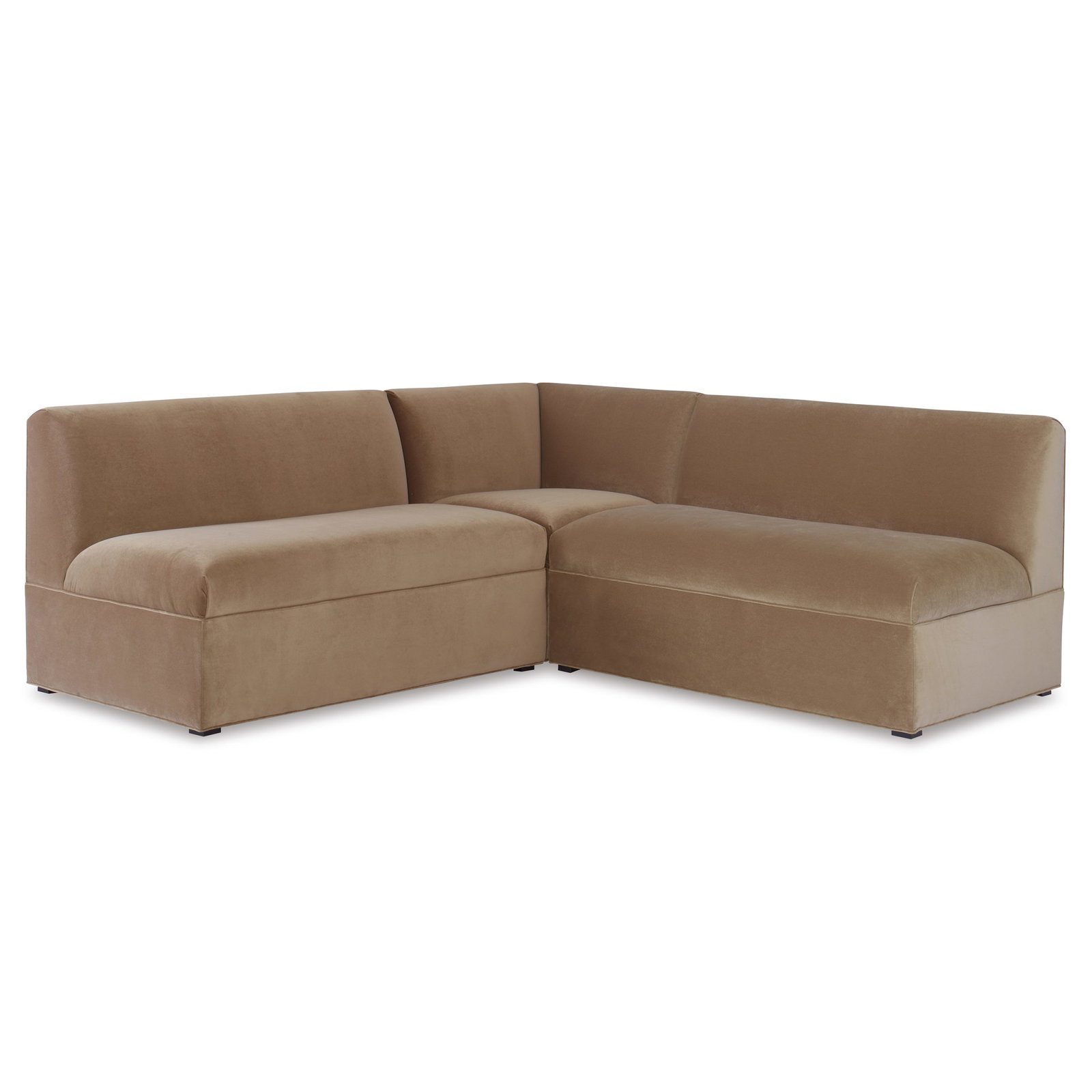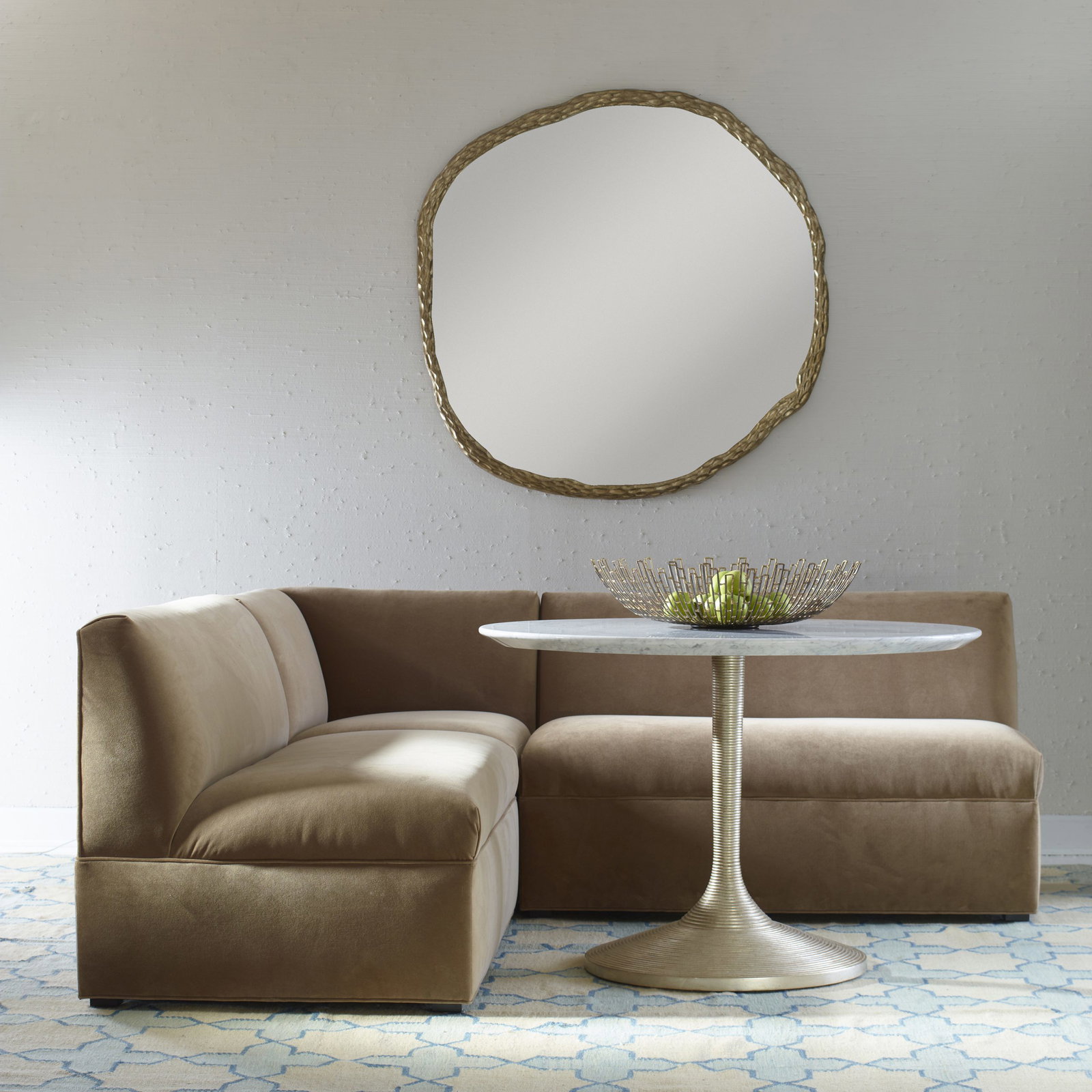 Product Description: Ambella Home 906-30 Layton Banquette - This fully upholstered banquette is perfect for a breakfast room, corner of a dining room or anywhere additional seating is needed. The attached back and seat cushion is upholstered to the ground creating a seamless silhouette.