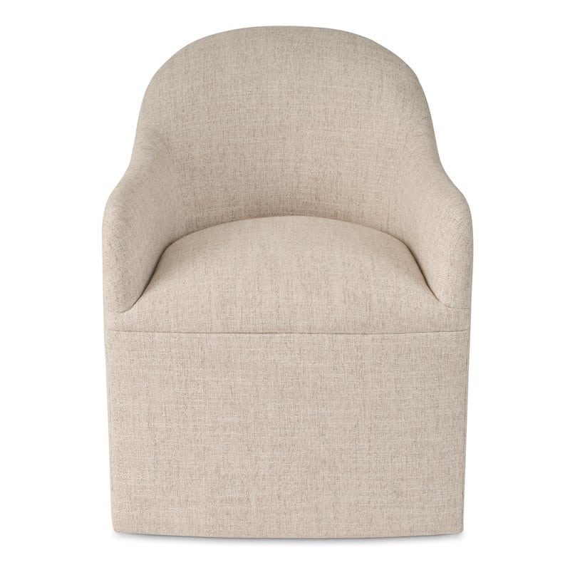 Product Description: Ambella Home 909-00 Camden Dining Chair - Based on our skirted Camden Game Chair, this version omits the skirt and is upholstered to the floor. The chair includes a tub shaped footprint with hidden castors for ease of movement.