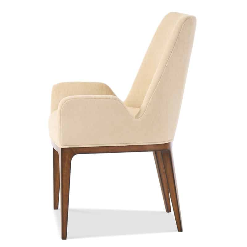 Product Description: Ambella Home 916-00 Cole Dining Chair - This dining chair includes a fully upholstered back and seat with unusual dipping arm. Raised on a curving solid Beechwood base and legs.