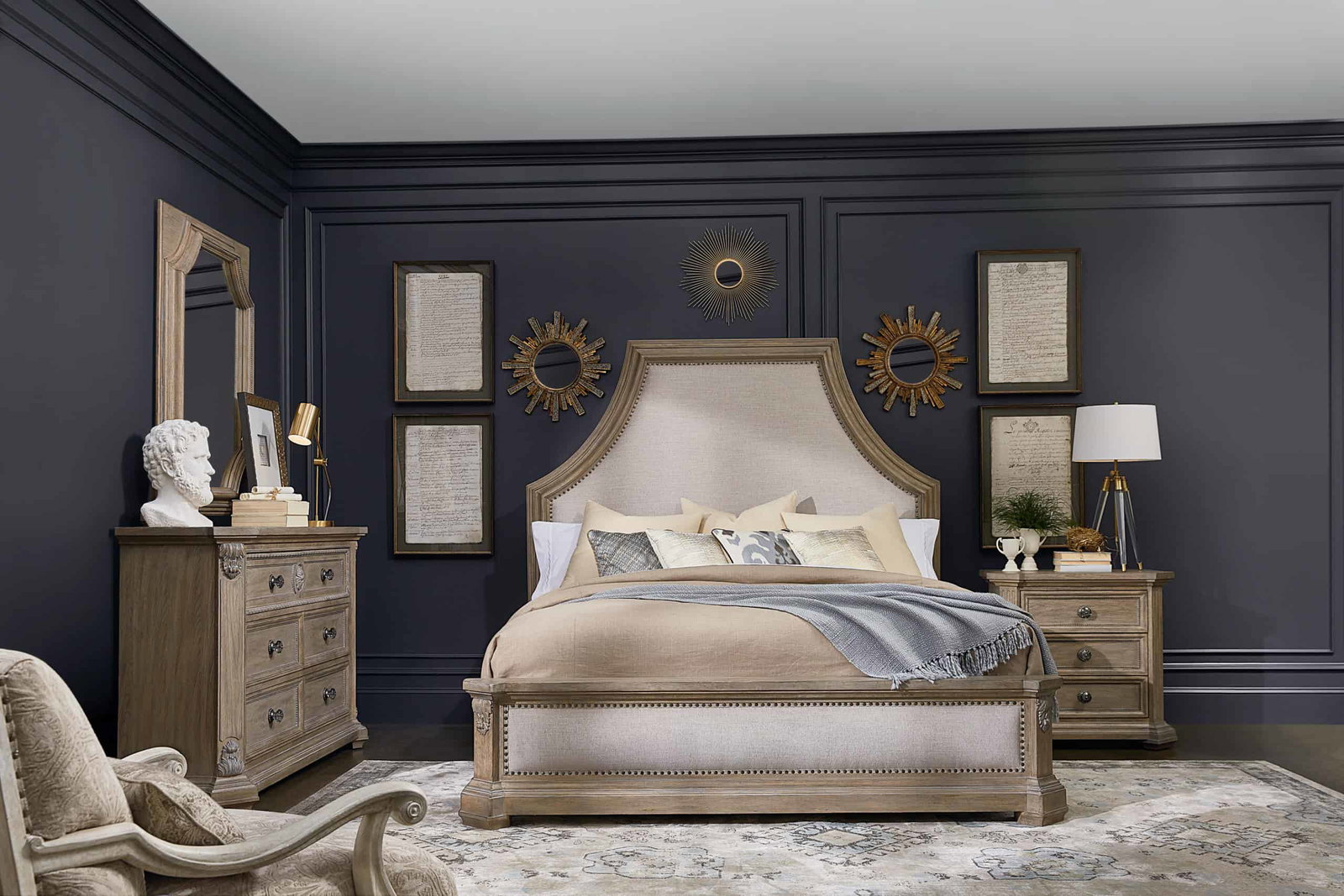 Freely borrowing from the classical architecture of Europe’s most beautiful cities, Arch. Salvage reinvents traditional style with confidence and sophistication. The collection is rich in repurposed details: carved corbels on a dresser inspired by a neoclassical marble mantel, a cedar-lined storage compartment hidden in the footboard of an imposing bed, carved scrollwork recalling the beauty of a cast iron railing. The architectural theme is reinforced with a soft earthy palette and gently weathered finishes.