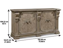 Product Description: ART Furniture 233251-2802 Arch Salvage Wren Buffet - Inspired by the robust neo-classical architecture of the eighteenth century, the doors of the Wren Buffet’s two cabinets are overlaid with ornate fretwork, and are framed in lamb’s tongue molding and bold corbeled pilasters. Each cabinet has a drawer and two adjustable and reversible shelves with wine cleats on one side. The buffet is constructed of Parawood solids and cathedral elm veneers, and is available in Parch, a light open-grained finish.