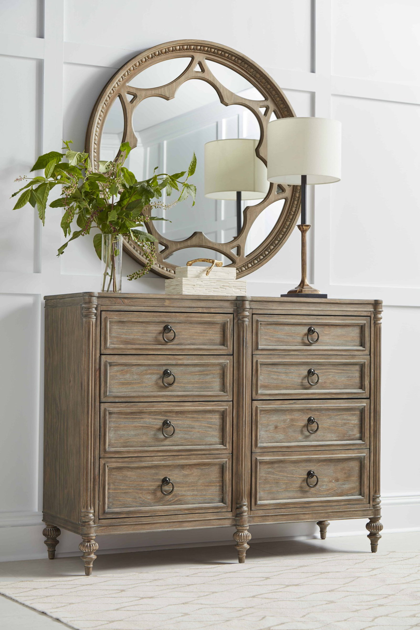 Product Description: ART Furniture 277123-2608 Architrave Round Mirror - Graceful arches frame the center of this round mirror, creating the illusion of gazing through an 18th-century cathedral window, complete with classically inspired egg-and-dart details.