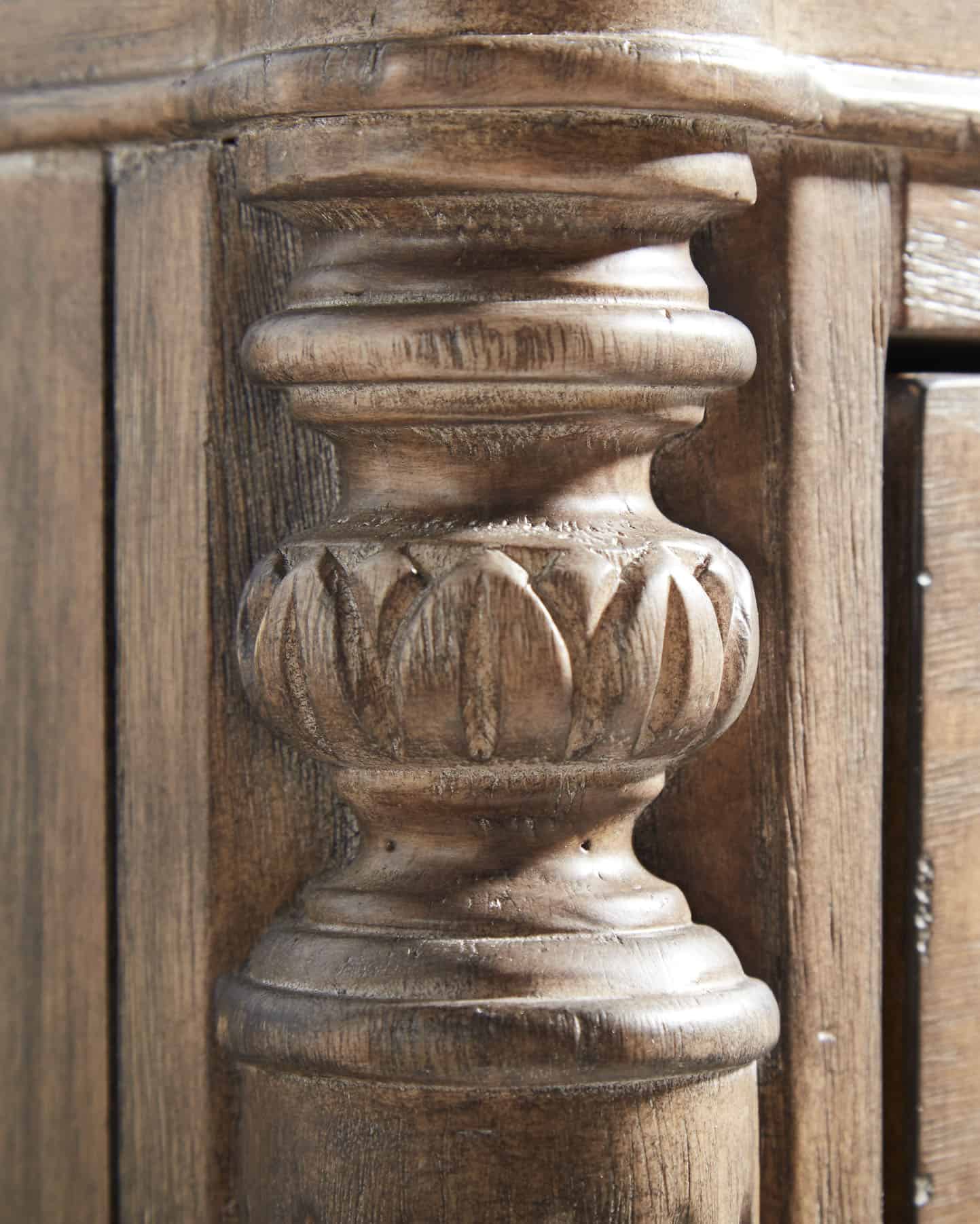 Step across the threshold of a new design frontier with the Architrave collection. Based on an architectural term that refers to a frame surrounding a doorway, this collection symbolizes a transition from history to the future. Architrave is historically inspired, reinventing the strong lines and classic symmetry of Neoclassical style from the Louis XVI period in France. This trendsetting 18th-century style is perfectly reimagined as a new casual classic,” dressed down in materials to evoke a more softened and livable feeling to suit modern taste. Pine solids and veneers are wire brushed and hand glazed in an almond tone with softened corners and worn details, finished with the delicate patina of oil rubbed bronze hardware.