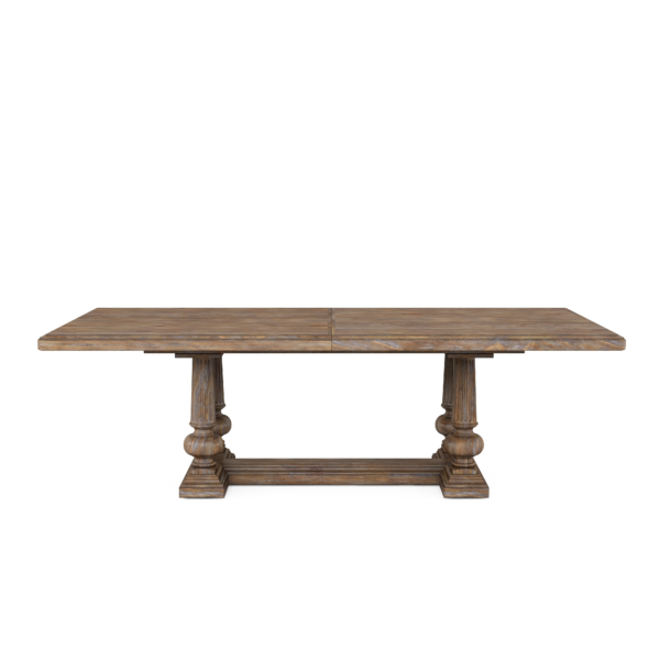 Product Description: ART Furniture 277238-2608 Architrave Trestle Dining Table - Sturdy enough to stand up to the challenge of daily family dinners, yet stylish enough to turn heads, the Architrave Trestle Table beautifully combines both form and function. The four support columns are beautifully embellished in a fluted style, the hallmark of the Architrave collection, while the solid trestle base evokes the feeling of grand historical architecture. The 96-in table can be extended to 116-in or 136-in with the addition of one or both leaves.