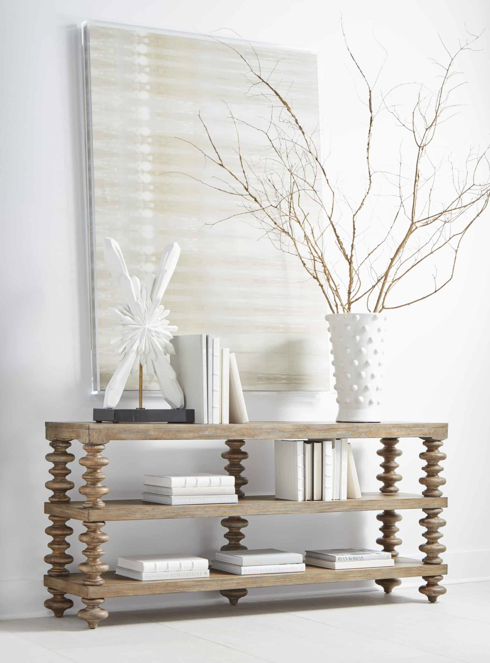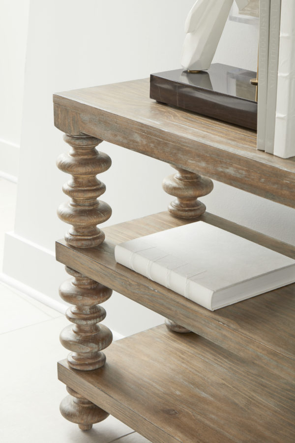 Product Description: ART Furniture 277307-2608 Architrave Console Table - The elegant turned legs of the Architrave Console Table, a hallmark of the neoclassically-inspired Architrave collection, support a 72-inch top and two open shelves that can be used for storage or display. This handsome piece combines historical form and rustic charm in a casual classic style, and can be used as a narrow table behind a sofa or in a hallway.