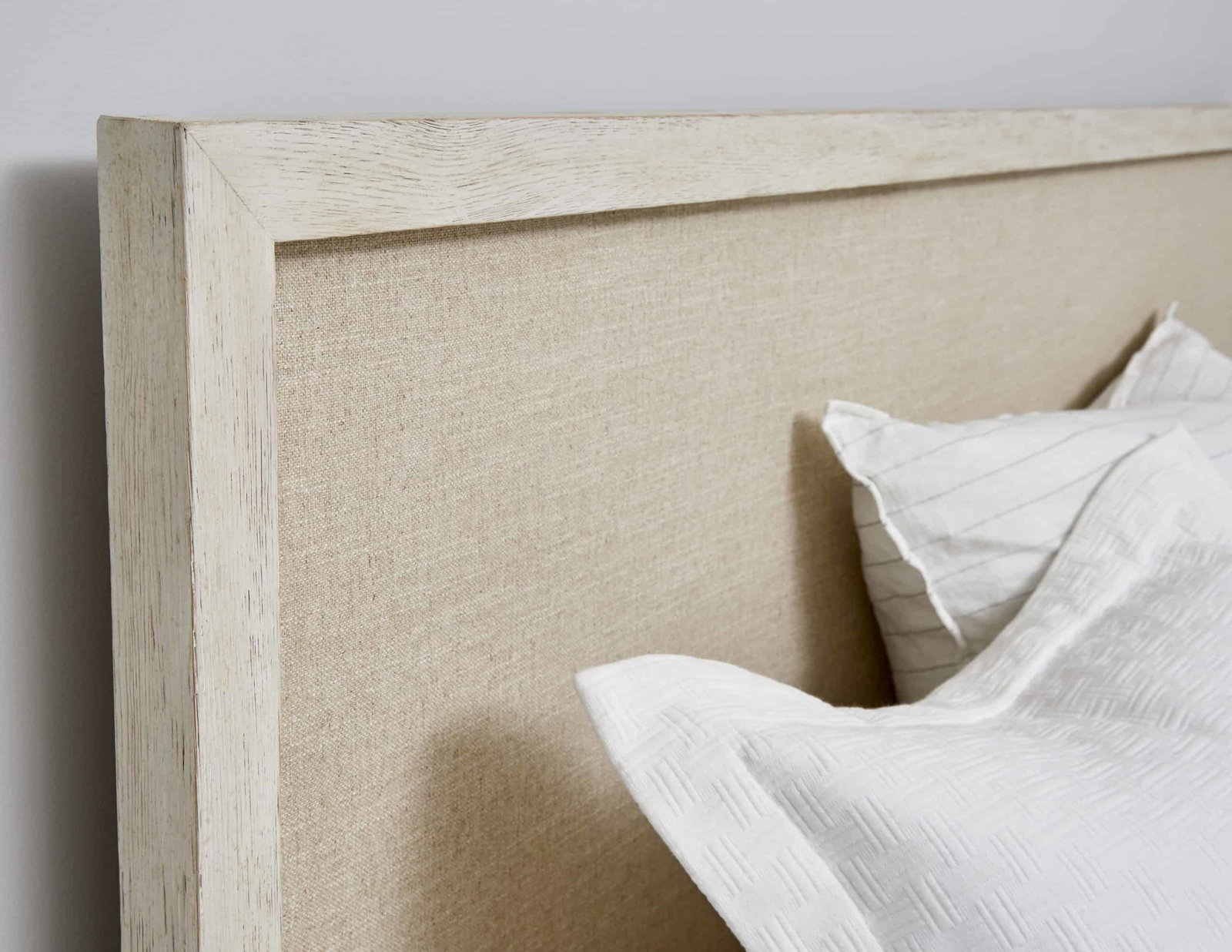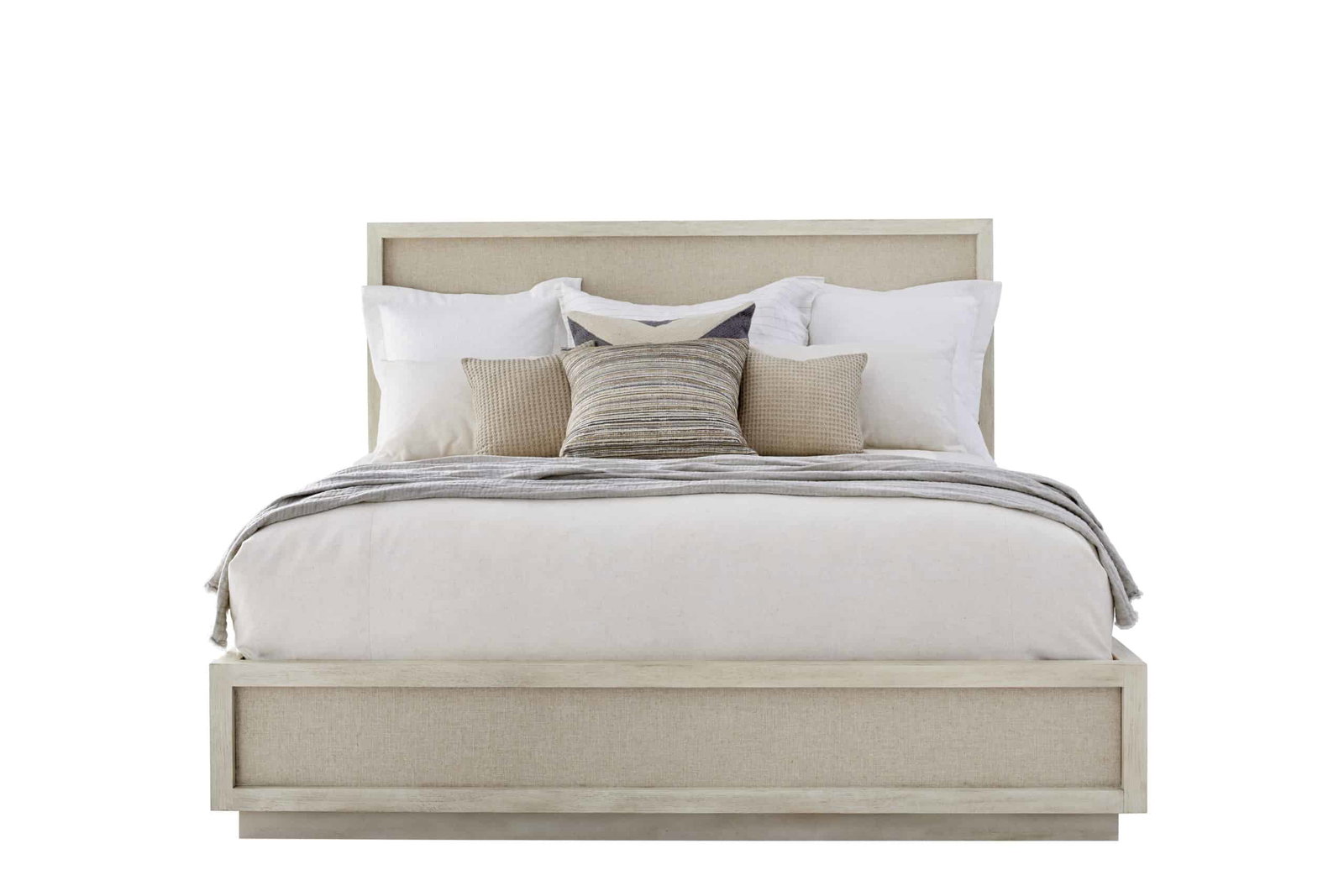Product Description: ART Furniture 299125-2349 Cotiere Queen Panel Bed - Form complements function beautifully in this modern panel bed, showcasing a solid base frame in a warm neutral finish highlighted by woven fabric upholstery. Reminiscent of strikingly geometric mid century architecture, the headboard and frame present vintage-inspired style with modern appeal.