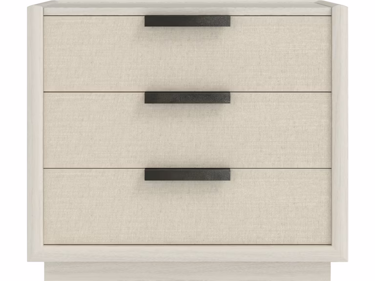 Product Description: ART Furniture 299142-2349 Cotiere Nightstand - The striking geometric design of the Coitere collection blends form and function, exemplified by this solid-base nightstand featuring textured metal drawer pulls that reflect contemporary architectural style. With three light wood drawers accented by woven fabric fronts, it offers a refined take on modern bungalow design.