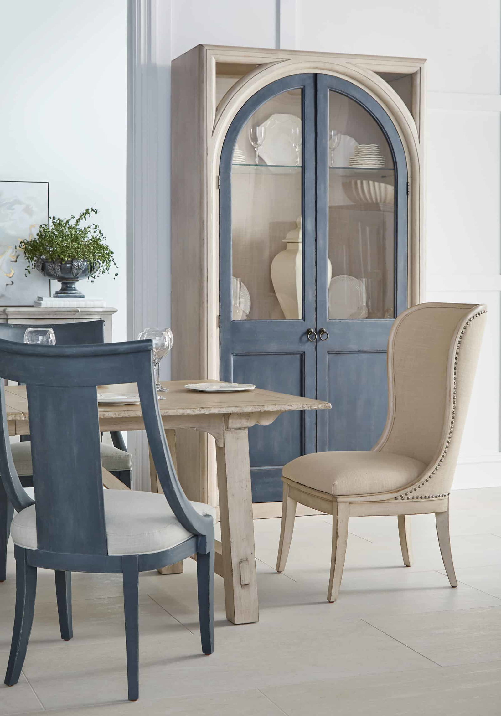 Product Description: ART Furniture 321240-2840 Alcove Display Cabinet - Featuring two arched wood framed glass doors, the Alcove Display Cabinet offers a visually striking display area for your treasured china and collectibles. The glass doors allow for a clear view of your items, while the elegant wood frames add a touch of architectural detail. Equipped with two adjustable glass shelves, this cabinet provides versatility and flexibility for displaying items of varying heights. The glass shelves allow the light included to shine through, illuminating your beautiful pieces. Additionally, it features one stationary shelf for stability and additional concealed storage options, allowing you to showcase and store your favorite items with ease.