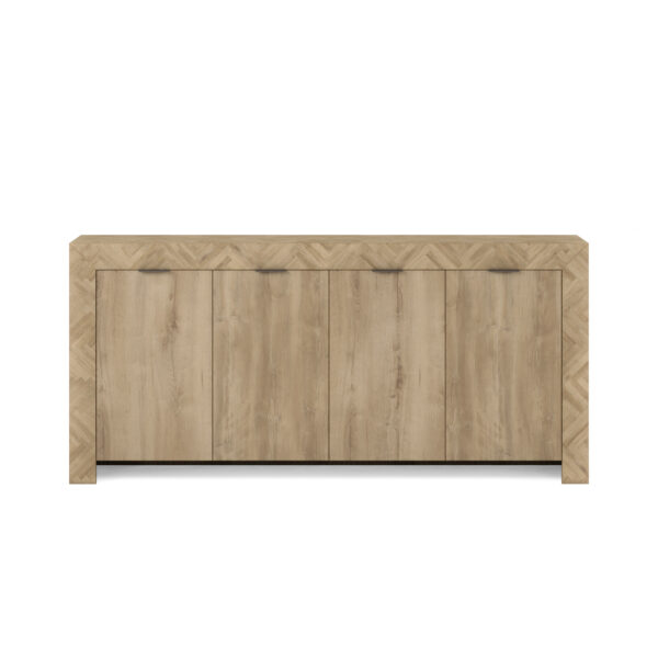 Product Description: ART Furniture 322252-1302 Garrison Credenza - With its warm, Washed Oak finish and striking herringbone pattern, this credenza is a masterpiece that will elevate your home with its sophisticated design. The cascading waterfall end panels add a touch of artistry to the design, accentuating its contemporary style and creating a captivating visual flow. This piece also offers abundant storage, keeping your belongings organized with ease and your space clutter-free.