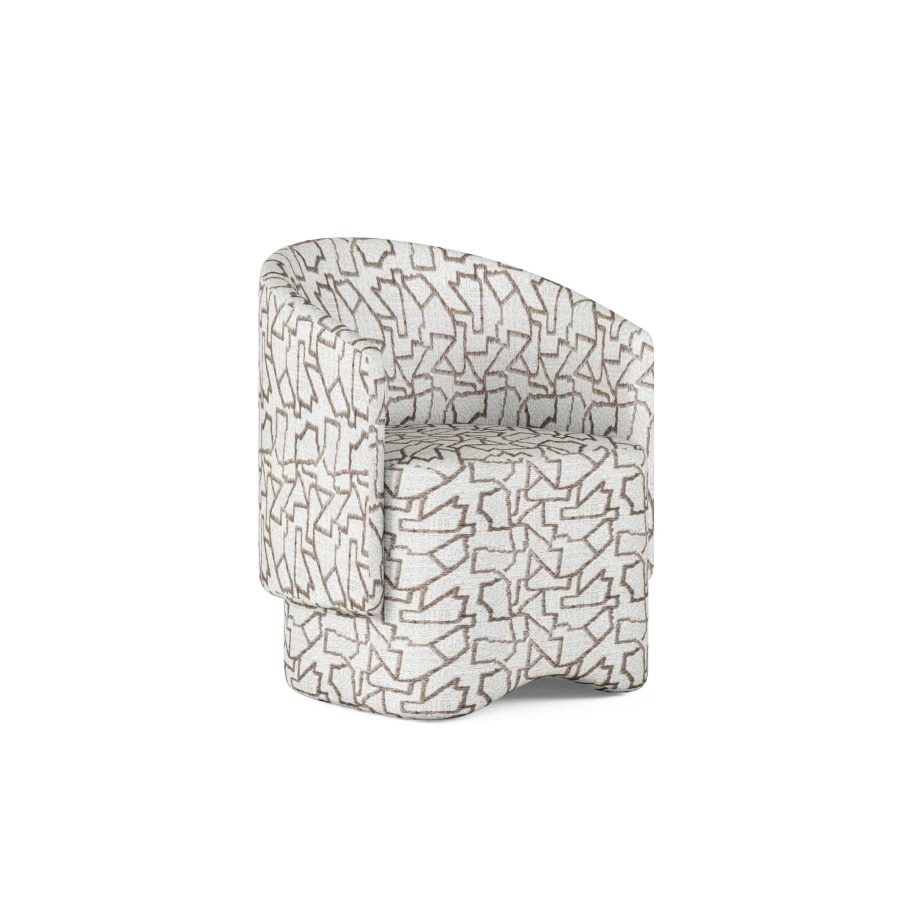 Product Description: ART Furniture 323200-3335 Portico Barrel Chair - Make a splash in a monochromatic palette with this abstract patterned upholstered barrel chair. A gently curved back is as stylish as it is supportive, and and creates and overlay effect with the base of the chair. Bold and eye-catching, this chair adds a touch of couture style to any room.